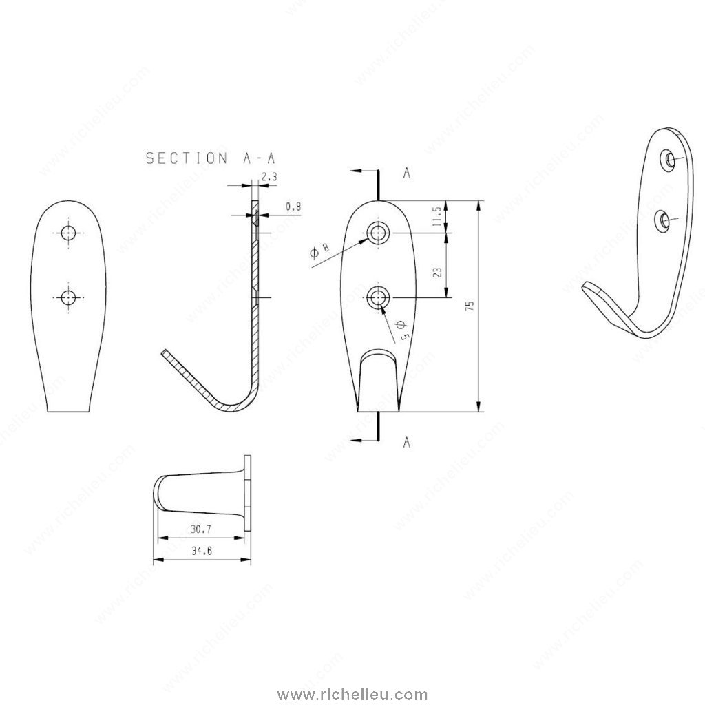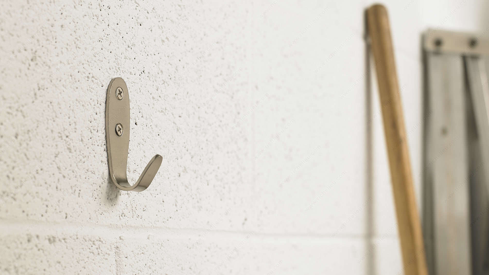 Richelieu RH3403301195 Utility Metal Hook - 34 offers a streamlined solution for organizing your workspace. Designed with clean lines and a brushed nickel finish, this versatile hook is perfect for enhancing storage efficiency in garages or tool sheds. With a robust load capacity of 22 lbs, it easily accommodates a variety of tools and equipment, allowing you to declutter and focus on your projects. The hook's overall dimensions measure 2 15/16 inches in height and 1 3/8 inches in projection, making it a compact yet effective storage solution. Featuring a center-to-center measurement of 29/32 inches, it is designed to maximize space while providing easy access to your items. The combination of gray and chrome colors adds a modern touch, ensuring that it seamlessly fits into any decor. Installation is straightforward, as screws are included, allowing you to set up your hook quickly. The utility hook's simple design and durable metal construction ensure it will stand the test of time, making it a reliable addition to your organization system. Transform your workspace with the practicality and style of the Richelieu RH3403301195 Utility Metal Hook.