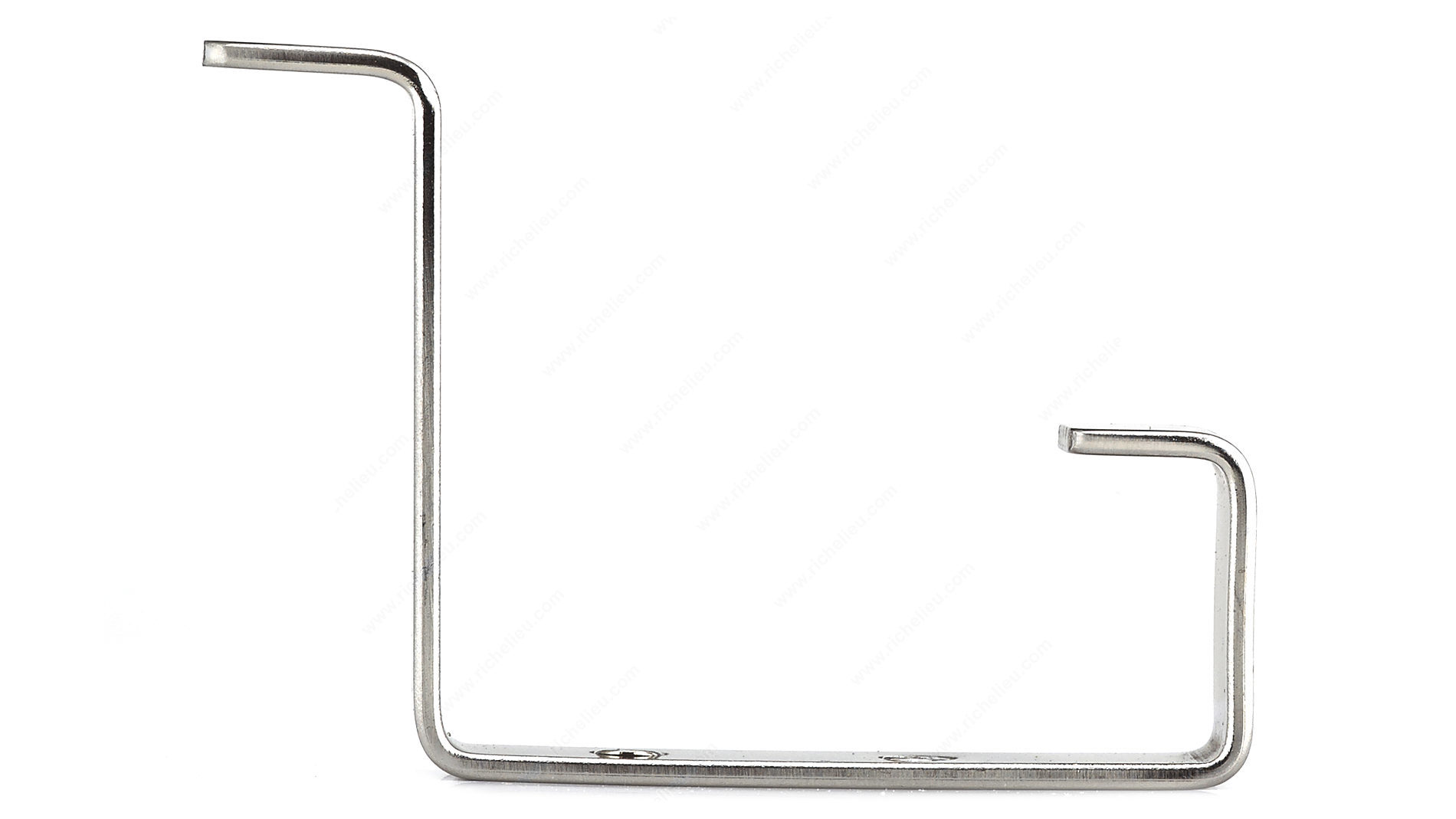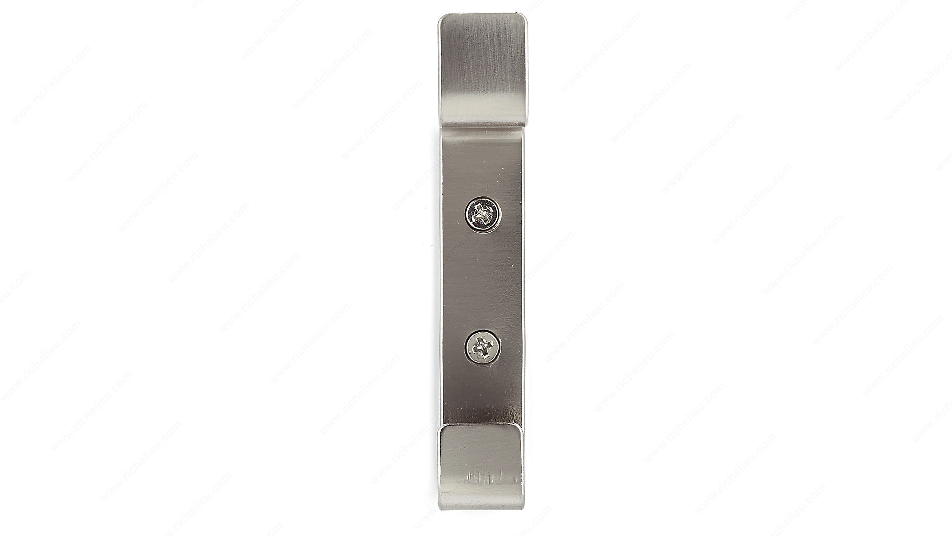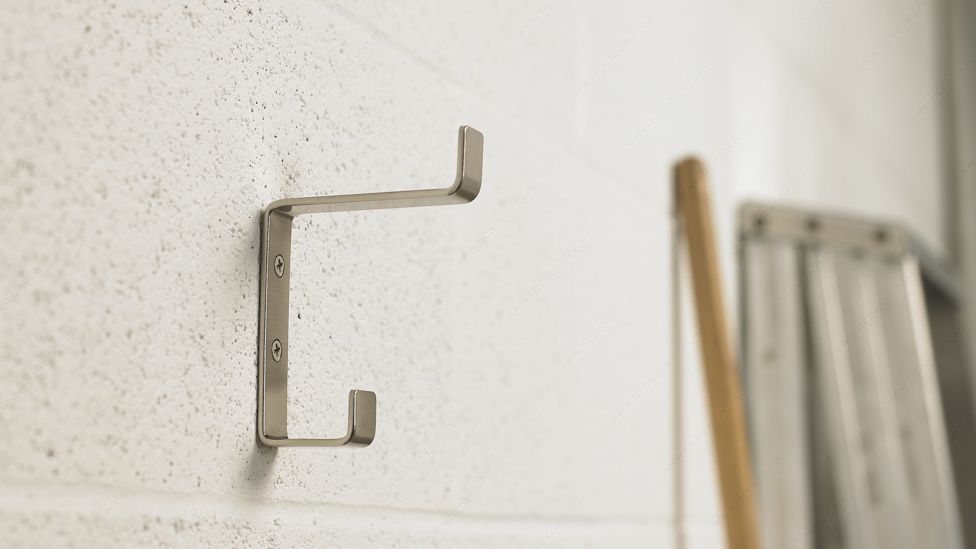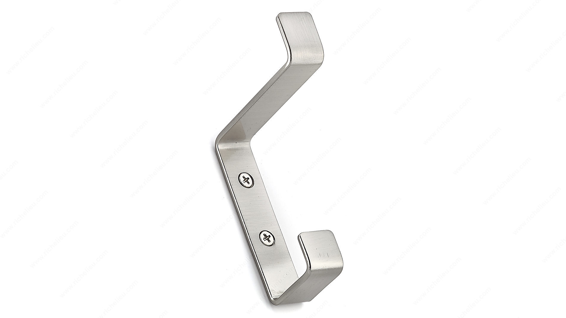 Richelieu RH3603301195 Utility Metal Hook - 36 offers a practical solution for organizing your space while adding a touch of style. This dual arm hook design effectively doubles your storage capacity, making it an excellent choice for tackling clutter in various environments, including garages, tool sheds, bedrooms, bathrooms, entryways, mudrooms, and closets. Its sleek brushed nickel finish and contemporary gray and chrome accents ensure it will blend seamlessly with any décor. Measuring 4 3/8 inches in height and 1 7/32 inches in width, this utility hook is designed for both functionality and aesthetics. With a load capacity of up to 22 pounds, it provides the strength needed for hanging coats, bags, tools, and more. The hook's projection of 2 7/8 inches allows for efficient use of wall or door space without overwhelming the area. Installation is straightforward, with screws included for a hassle-free setup. Whether you are a building professional or a knowledgeable homeowner, the Richelieu utility metal hook is an essential addition to any organized space, combining durability and modern design to meet your storage needs effectively.