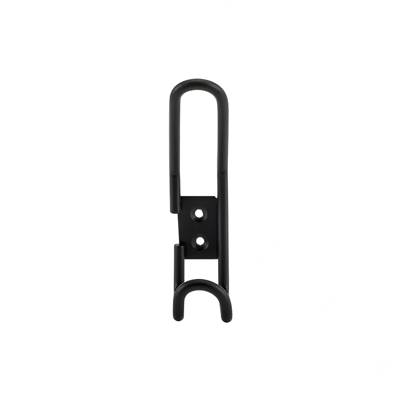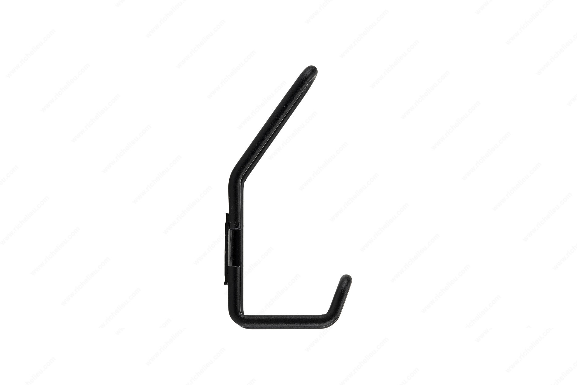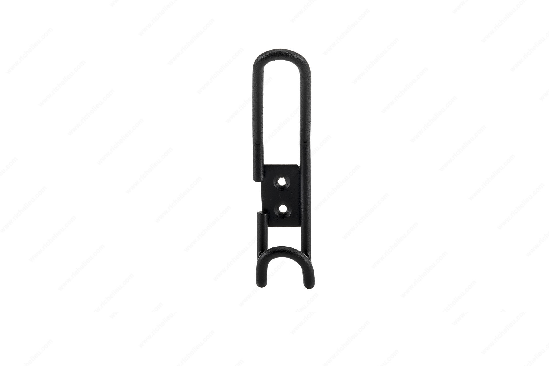 Richelieu RH376101900 Single Utility Hook - 376 combines functionality with style, making it an excellent addition to any space. This sleek matte black utility hook features a dual arm design that enhances your storage potential, allowing you to hang multiple items effortlessly. Crafted from durable steel, it not only provides a modern aesthetic but also ensures longevity and reliability. Perfect for a variety of settings, this hook is ideal for bedrooms, bathrooms, entryways, mudrooms, and closets. Whether you need to store coats, bags, or other belongings, the RH376101900 accommodates up to 22 pounds, making it a robust solution for everyday use. Its compact dimensions-5 3/16 inches in height, 1 1/4 inches in width, and a projection of 2 7/16 inches-allow for versatile installation on walls or doors without taking up unnecessary space. Included with the hook are wood screws for easy installation, ensuring you can set it up quickly and securely. With its elegant design and practical features, the Richelieu RH376101900 Single Utility Hook is an essential accessory for organizing your home or workspace while adding a touch of sophistication to your décor.