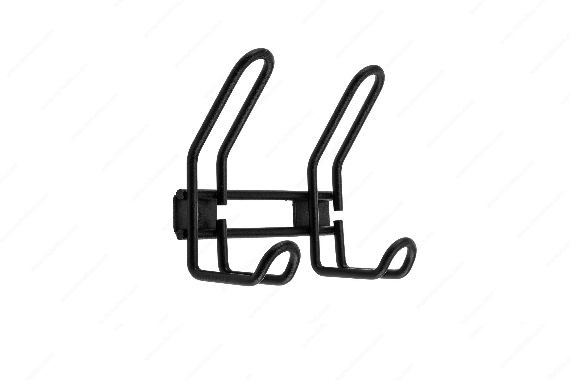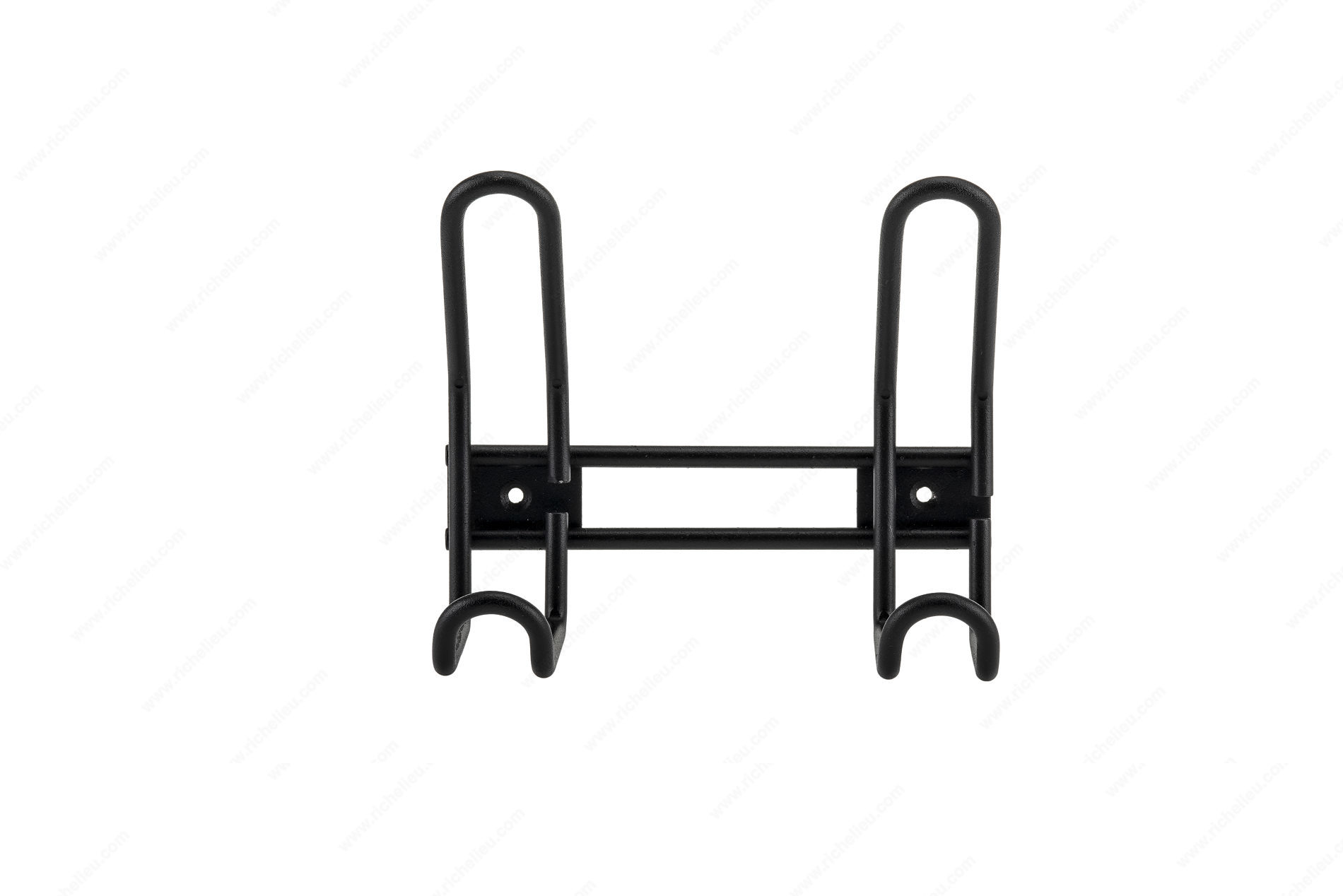 Richelieu RH376205900 Utility Hook Rail - 376 is a thoughtfully designed multipurpose hook rail that combines functionality with a modern aesthetic. Featuring a unique curved design, this versatile accessory allows for optimal organization by accommodating a variety of items, making it ideal for both residential and commercial spaces. Crafted from durable steel, the hook rail boasts a matte black finish that adds a contemporary touch to any setting. Its overall dimensions measure 5 3/16 inches in height, 5 3/4 inches in width, and 2 7/16 inches in projection, making it a compact yet effective solution for maximizing space. With a load capacity of 22 pounds, it is robust enough to hold multiple items securely. The hook model is designed for utility, featuring multiple hooks that ensure ease of access to your belongings. Installation is straightforward, as the necessary wood screws are included for a hassle-free setup. The center-to-center measurement of 4 11/32 inches allows for flexible placement options. Whether you're looking to enhance your kitchen, entryway, or workspace, the Richelieu RH376205900 Utility Hook Rail is an excellent choice for those who value both style and practicality. Transform your organization with this modern hook rail that delivers on both form and function.