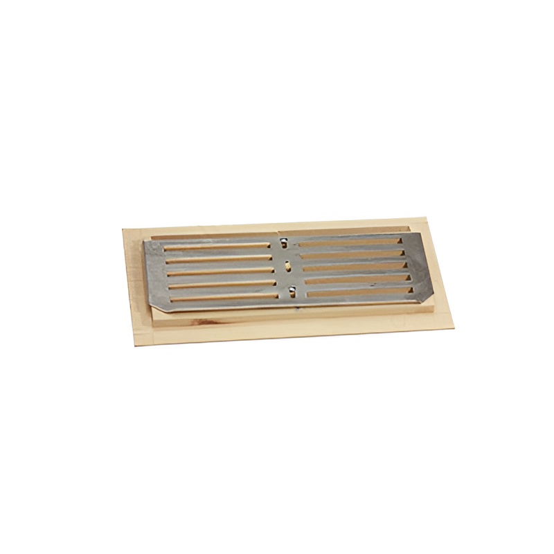 Richelieu RS41003 Surface-Mount Floor Register - Wood offers a stunning blend of functionality and elegance for your space. Designed for surface mounting, this register is crafted from high-quality birch wood, ensuring both durability and aesthetic appeal. With overall dimensions of 11 1/8 inches in length and 5 inches in width, it seamlessly fits into duct openings measuring 10 inches long by 4 inches wide, making it an ideal choice for various installation needs. One key aspect to consider when using this register is the varnishing process. To maintain a stable moisture content between 6% and 9%, it's crucial to varnish the entire register. This helps prevent bending due to ventilation, ensuring longevity and consistent performance. The RS41003 features a sleek projection of 3/4 inch, allowing it to blend effortlessly with your flooring while providing efficient airflow. The natural wood finish enhances the overall décor, making it suitable for both contemporary and traditional settings. In stock and ready to ship via UPS, the Richelieu RS41003 is a reliable choice for building professionals and homeowners alike, combining practicality with timeless design. Elevate your interior with this functional yet stylish floor register.