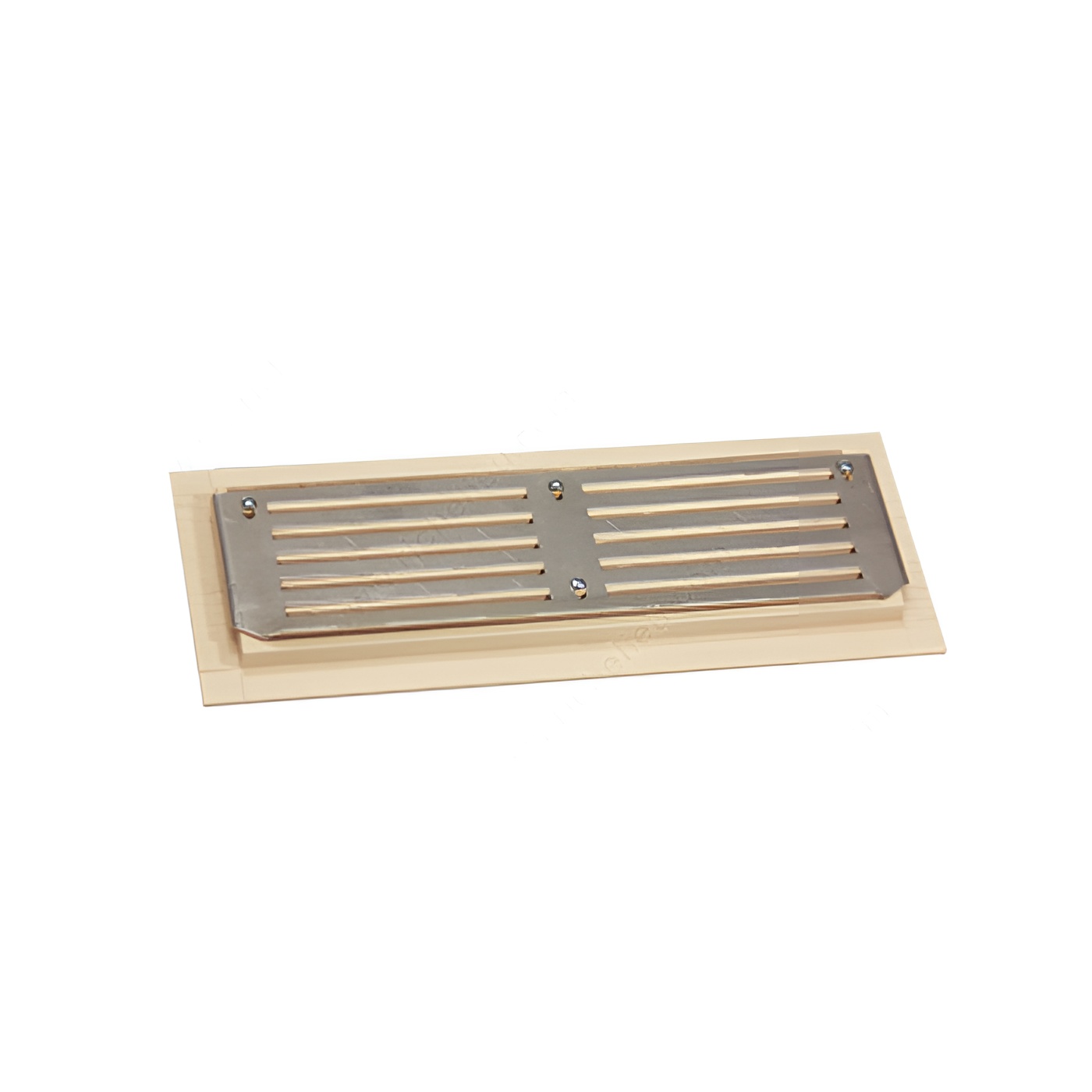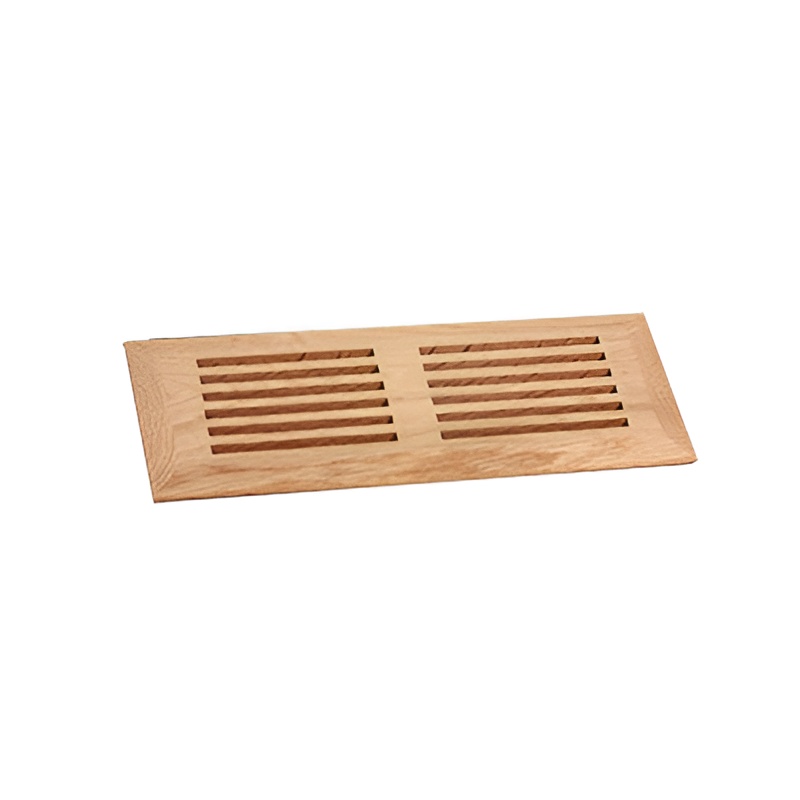 Richelieu RS41225 Surface-Mount Floor Register - Wood seamlessly combines functionality and aesthetics in your space. Crafted from high-quality red oak, this surface-mounted floor register is designed to enhance your interior while effectively managing airflow. With overall dimensions of 13 1/8 inches in length and 5 inches in width, it fits snugly over a duct opening measuring 12 inches by 4 inches, ensuring a secure and pleasing installation. One of the standout features of the RS41225 is its wood finish, which adds a touch of warmth and sophistication to any room. However, proper care is essential; it is crucial to varnish the entire register to maintain a stable moisture content between 6% and 9%. This precaution helps prevent warping due to ventilation, ensuring durability and longevity. The register also boasts a slim profile with a projection of just 3/4 inch, making it a subtle addition to your flooring. Designed for easy shipping via UPS, the product is in stock and ready to enhance your home or professional project. Elevate your space with the Richelieu RS41225, where style meets practicality in perfect harmony.