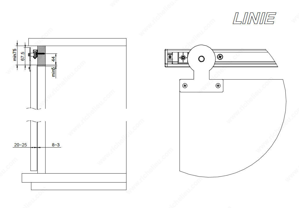Richelieu WEBKIT1216632 LINIE Mini Barn Door Style Sliding System offers a stylish and functional solution for modern living spaces. Designed for mini barn-style doors weighing up to 55 lb (25 kg), this top-running decorative sliding system is perfect for various applications, including kitchen islands, bathroom vanities, and TV cabinets. The LINIE features quiet ball bearing wheels that ensure smooth operation, while its C-shape track can be easily cut to size for a customized fit. Compatible with door thicknesses ranging from 3/4 in (20 mm) to 1 in (25 mm), this system accommodates doors with a maximum height of 66 in and a width of up to 36 in. With a sleek matte black finish, the LINIE enhances the rustic aesthetic of your space, making it an ideal choice for furniture, cabinets, and storage solutions. The overall length of the track is 72 in, and it is designed for single sliding door movement with full overlay positioning. The top-hung installation ensures a clean look while maximizing the usability of your space. Elevate your home’s functionality and design with the Richelieu LINIE Mini Barn Door Style Sliding System, where practicality meets contemporary style.