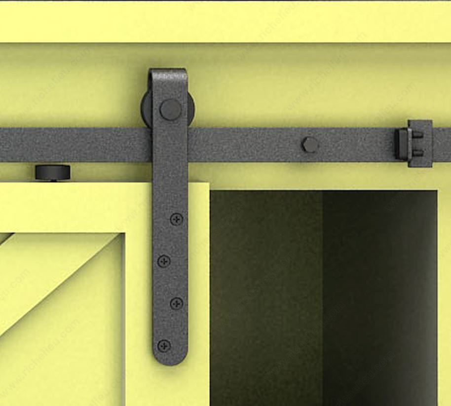 The UMBRA is a top running decorative sliding system for mini barn-style doors weighing up to 55 lb (25 kg) each.