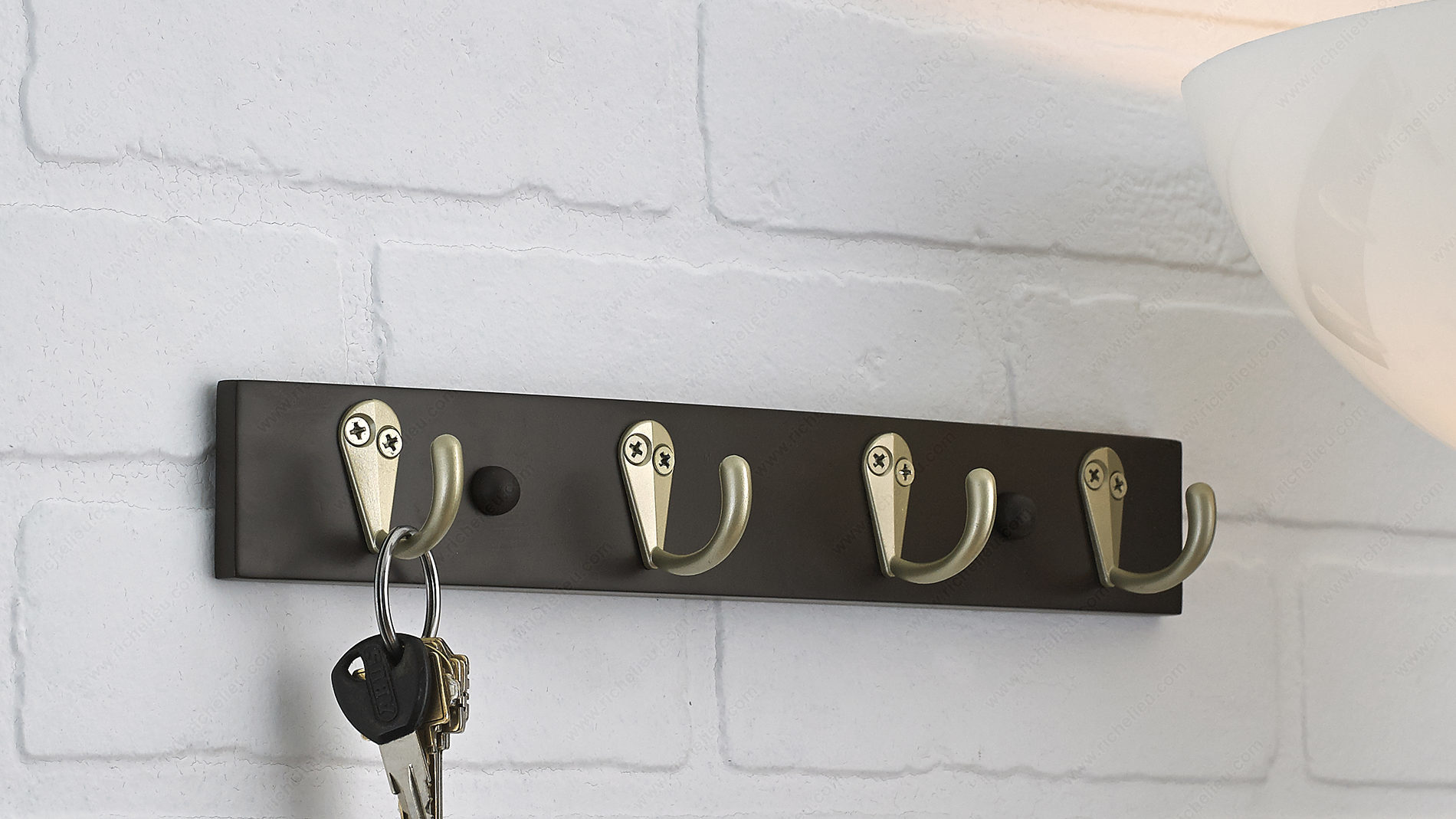 Richelieu T33451184 Utility Hook Rack - 334 offers a practical solution to your storage needs while enhancing your home’s aesthetic. This sleek and modern hook rack is designed to optimize space, making it a perfect addition to any room, from entryways to kitchens. With an overall height of 1 25/32 inches and a width of 11 3/4 inches, it provides a compact yet effective storage option without overwhelming your décor. Crafted from durable metal and wood, the hook rack features a matte nickel and espresso finish, complemented by a stylish gray and chrome color scheme. Its multiple utility hooks can support a load capacity of up to 22 pounds, making it ideal for hanging everything from coats to kitchen utensils. The included screws and nails ensure easy installation, allowing you to quickly incorporate this functional piece into your space. With a projection of just 1 13/16 inches, the Richelieu Utility Hook Rack is not only space-efficient but also adds a touch of elegance to your interior design. This hook rack proves that even small storage solutions can make a significant impact on organization and style. Enhance your home’s functionality with this versatile and chic accessory.