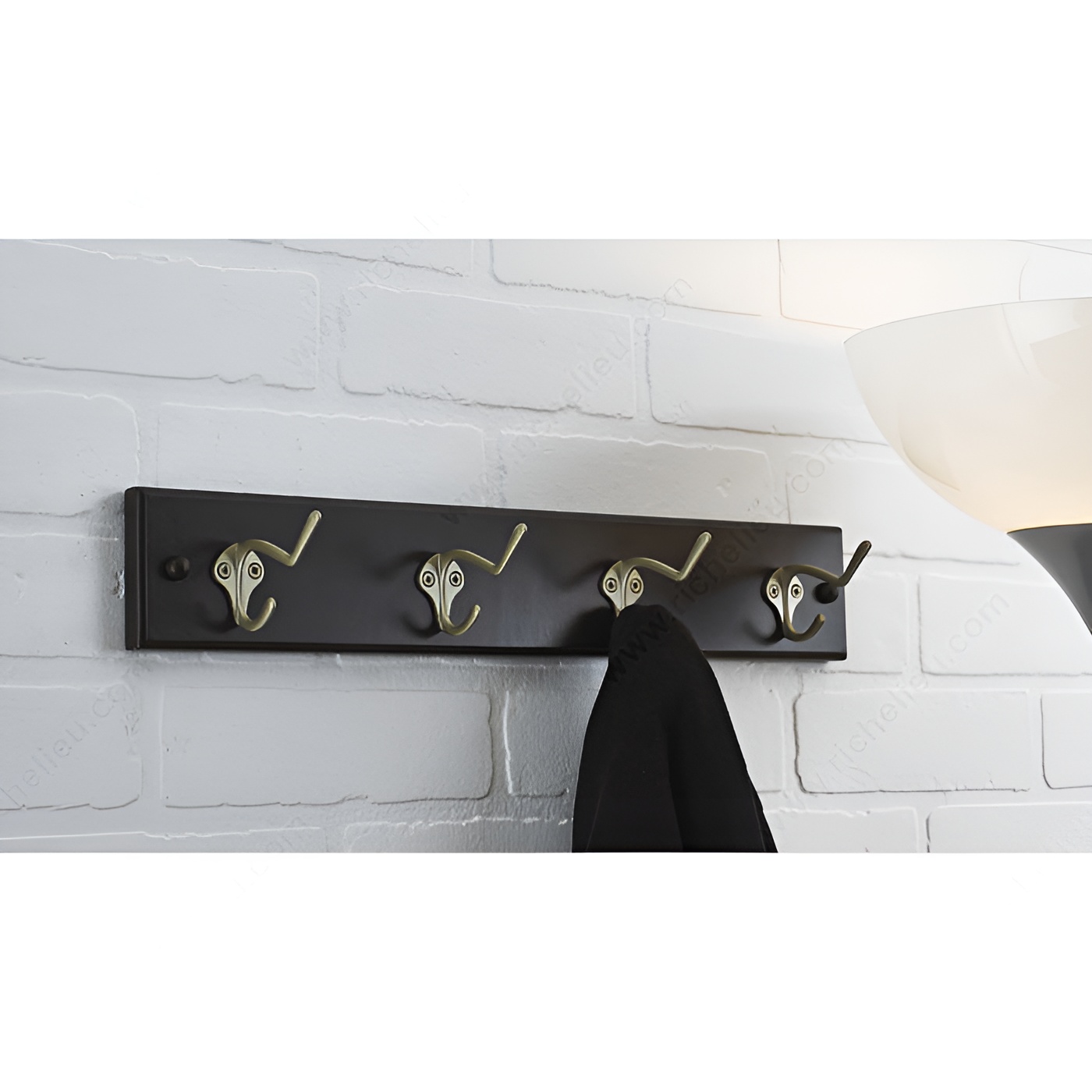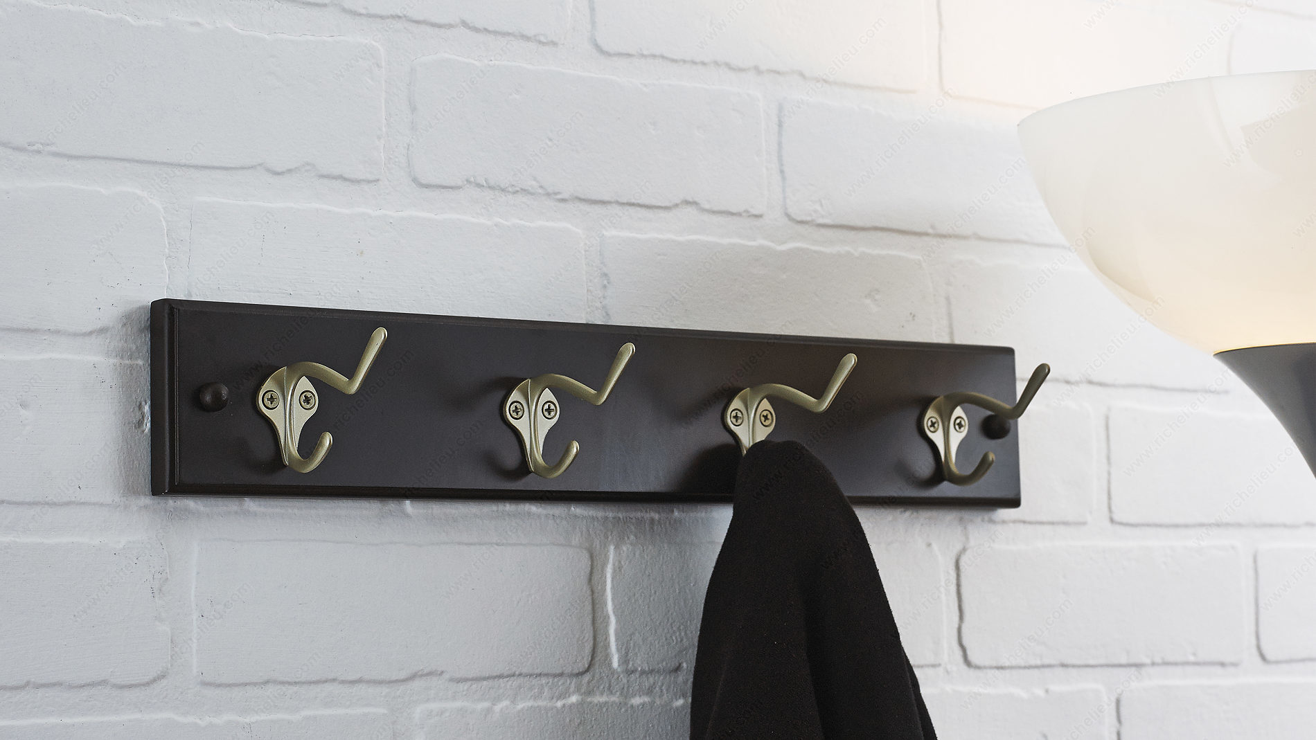 Richelieu T37751184 Utility Hook Rack - 377 offers a perfect blend of style and functionality with its sleek design and practical features. This utility hook rack is equipped with four coat hooks crafted in a sophisticated matte nickel and espresso finish, making it an attractive addition to any space. The dual arm design maximizes storage potential, accommodating everything from coats to bags, ensuring you stay organized. Measuring 17 7/8 inches wide and 2 15/16 inches in height, this hook rack is ideal for various applications, including bedrooms, bathrooms, entryways, mudrooms, and closets. Its versatile installation options allow it to be easily mounted on walls or doors. For optimal performance, it’s recommended to install the hooks directly into wall studs, typically located at 16-inch intervals. If studs are not available, appropriate drywall anchors should be used (not included). Constructed from durable metal and wood, the Richelieu Utility Hook Rack can support a load capacity of up to 22 pounds, making it a reliable choice for everyday use. Complete with screws and nails for easy installation, this utility hook rack is the ideal solution for those looking to enhance their home organization while adding a touch of elegance.