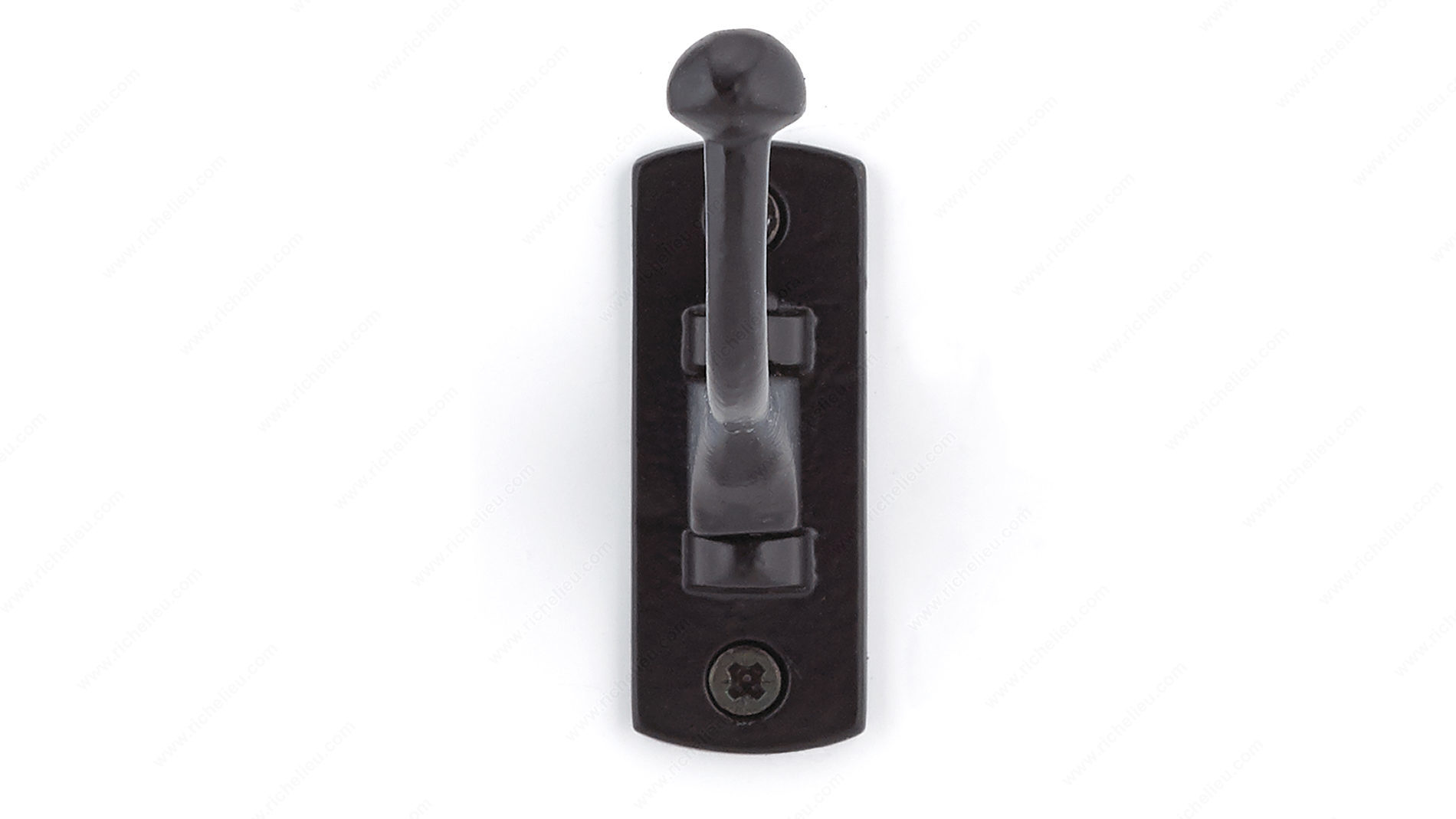 Richelieu T5606900 Utility Swivel Hook - 560 offers a practical solution with a classic aesthetic, making it a versatile addition to any room or storage area. Crafted from durable metal and finished in a sleek matte black, this swivel hook not only provides functionality but also enhances the overall decor. With an overall height of 2 3/8 inches and a projection of 4 1/4 inches, it is designed to accommodate various items while keeping your space organized. The hook boasts an impressive load capacity of 22 lbs, making it suitable for hanging everything from coats to bags. For optimal strength and safety, it is recommended to mount the hook directly to wall studs, typically located at 16-inch intervals. If wall studs are not available, appropriate drywall anchors should be used (anchors not included). The installation comes easy, as screws are included along with the hook. With dimensions of 29/32 inches in width, this utility hook is compact yet effective, folding back against the wall when not in use to save space. Richelieu’s T5606900 Utility Swivel Hook - 560 is the ideal choice for those seeking a functional and stylish storage solution.