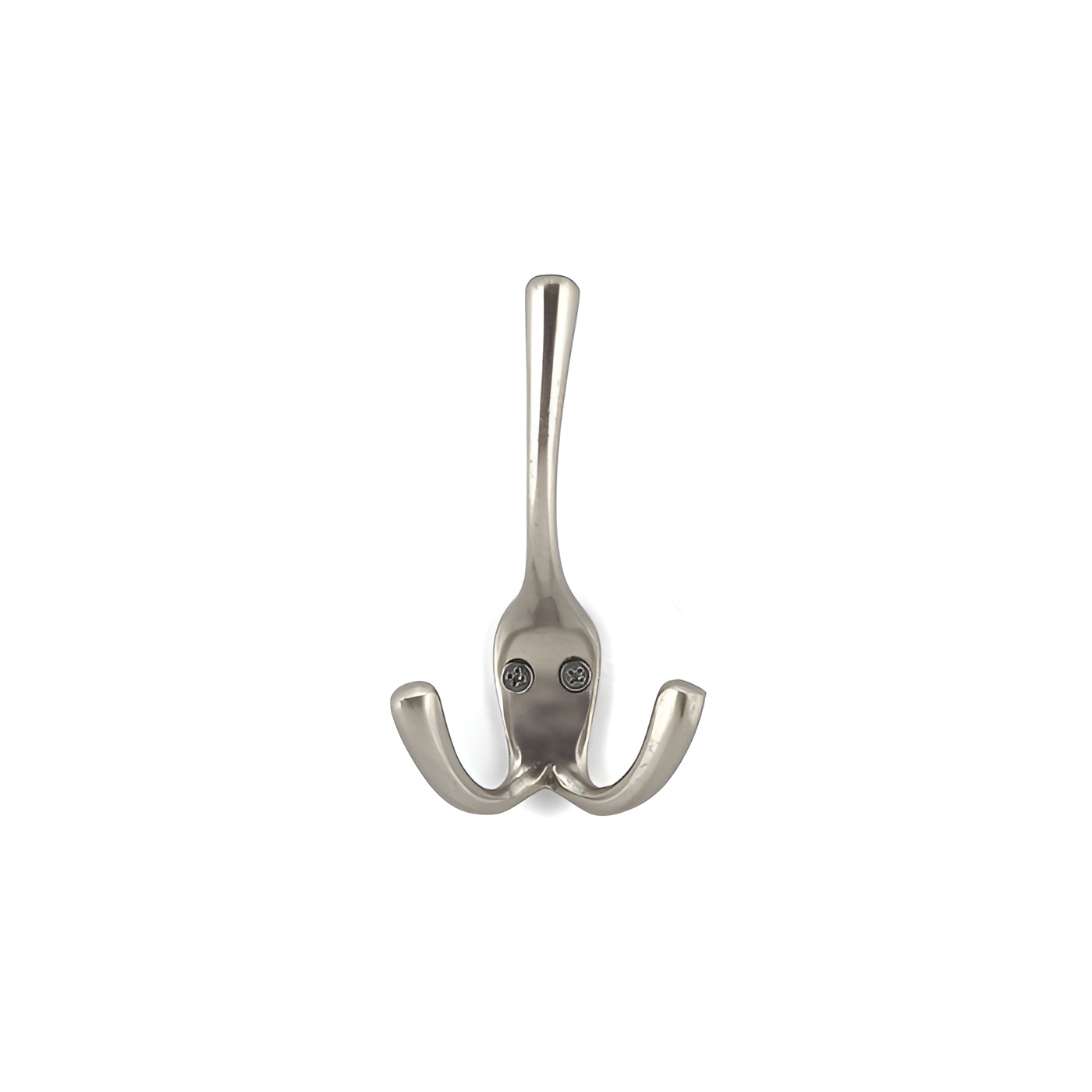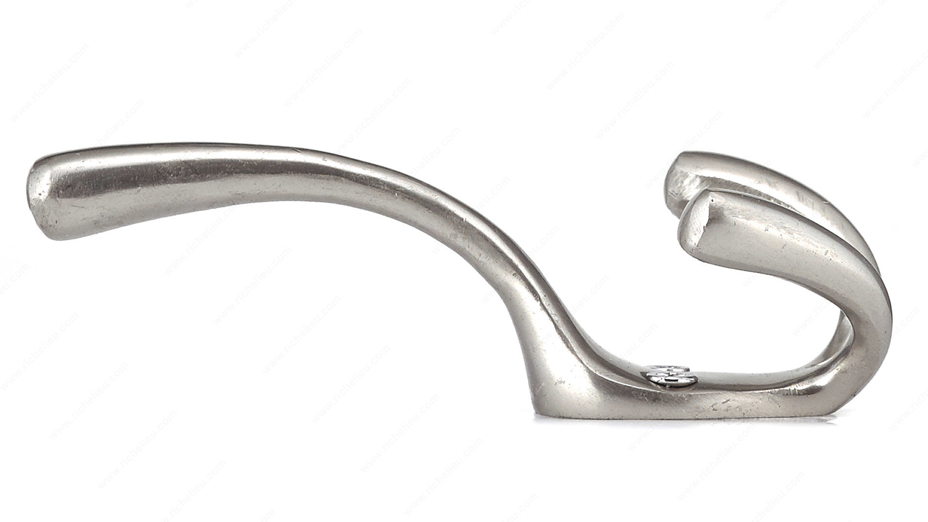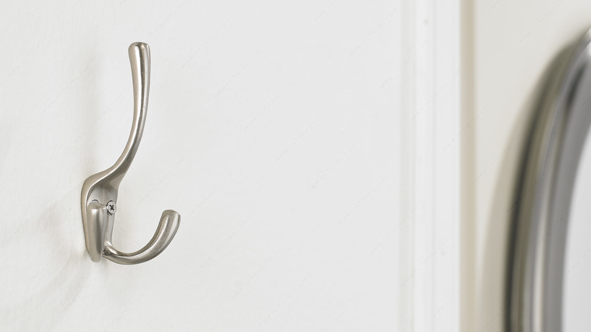 Richelieu T5611184 4-1/2 in Triple Utility Hook - 5611 offers a perfect blend of convenience and functionality, designed to optimize space in narrow entryways. With a sleek matte nickel finish, this utility hook not only enhances your decor but also provides practical solutions for hanging various items. Measuring 4 23/32 inches in height and 3 3/32 inches in width, this hook features a compact design that fits seamlessly into tight spaces. The overall projection of 1 11/32 inches ensures it remains unobtrusive while still being highly effective. Its robust metal construction allows for a load capacity of up to 22 pounds, making it suitable for a variety of uses, from coats to bags. The hook is designed with a center-to-center measurement of 15/32 inches, ensuring an efficient installation process. Included screws make setup straightforward, so you can have your new hook ready to use in no time. The combination of gray and chrome colors adds a modern touch that complements any interior style. Ideal for both building professionals and discerning homeowners, the Richelieu T5611184 Triple Utility Hook is a smart addition to any space that values both style and practicality.