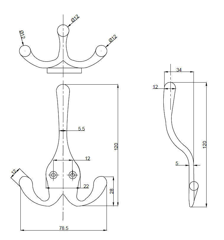 Center to Center: 12 mm