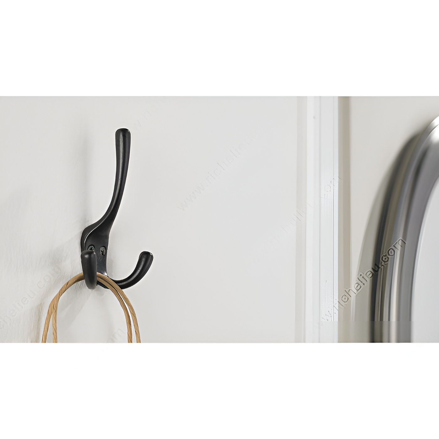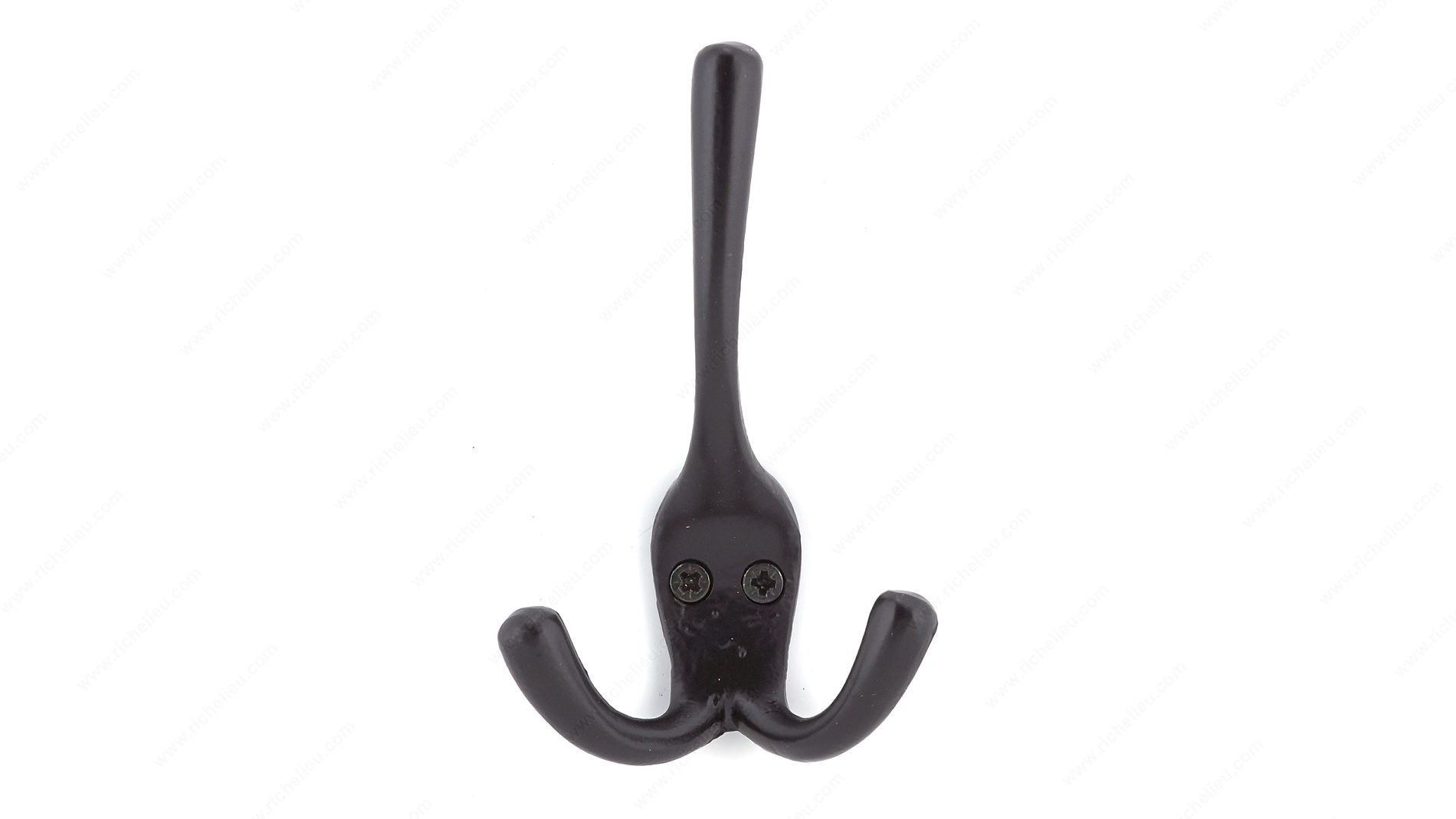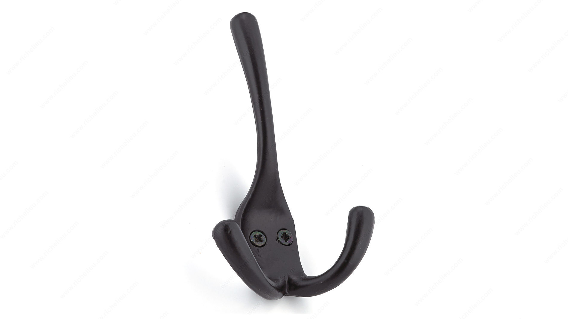 Richelieu T5611900 4-1/2 in Triple Utility Hook is the perfect solution for maximizing space in narrow entryways or any area where organization is key. Designed with functionality in mind, this utility hook features a sleek matte black finish that complements a variety of interior styles while ensuring durability through its robust metal construction. With an overall height of 4 23/32 inches and a width of 3 3/32 inches, the triple hook design allows for efficient use of vertical space, providing ample room to hang up to 22 pounds. The thoughtful 15/32 inch center-to-center spacing between hooks helps keep items neatly organized without overcrowding. This makes it an ideal choice for coats, bags, or accessories. Installation is a breeze with included screws, allowing you to set up this versatile hook in no time. The projection of 1 11/32 inches ensures it remains unobtrusive, making it a great addition to hallways, laundry rooms, or garages. The Richelieu T5611900 is not just practical; it’s a stylish and reliable choice for anyone looking to enhance their space with quality hardware.