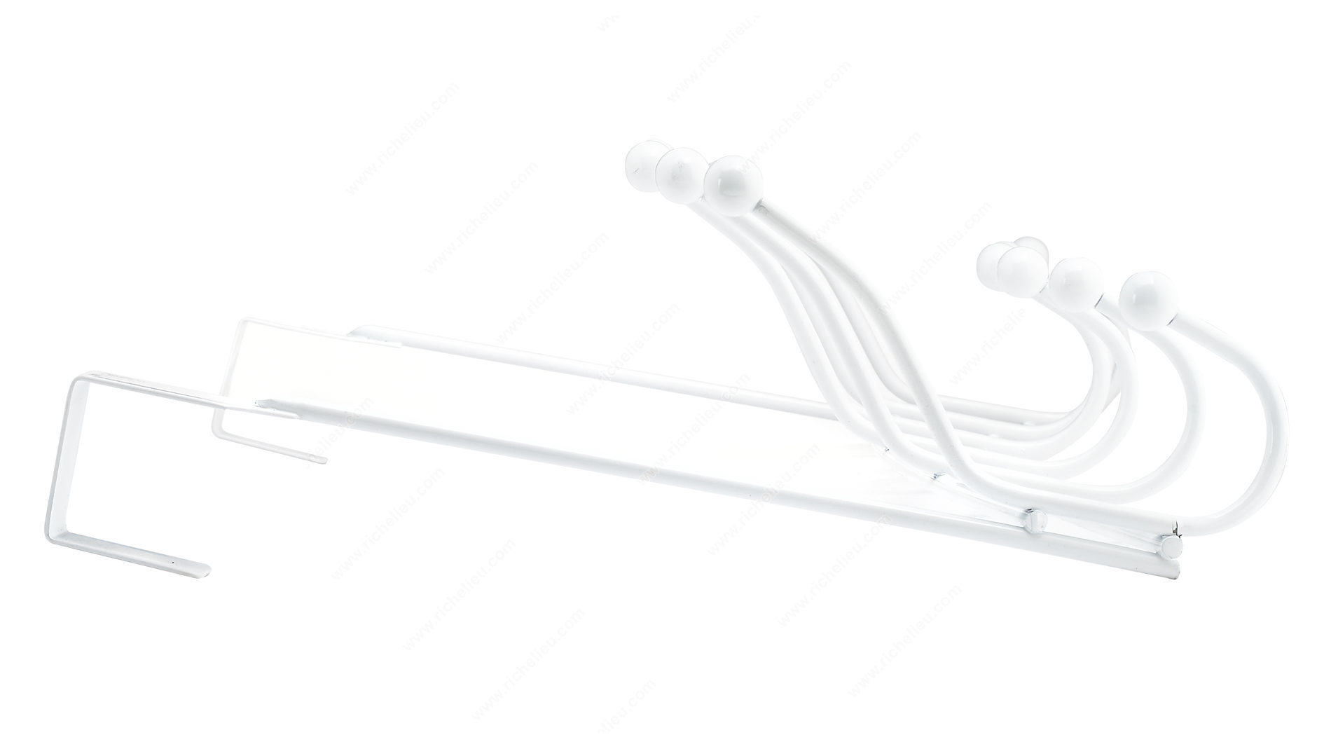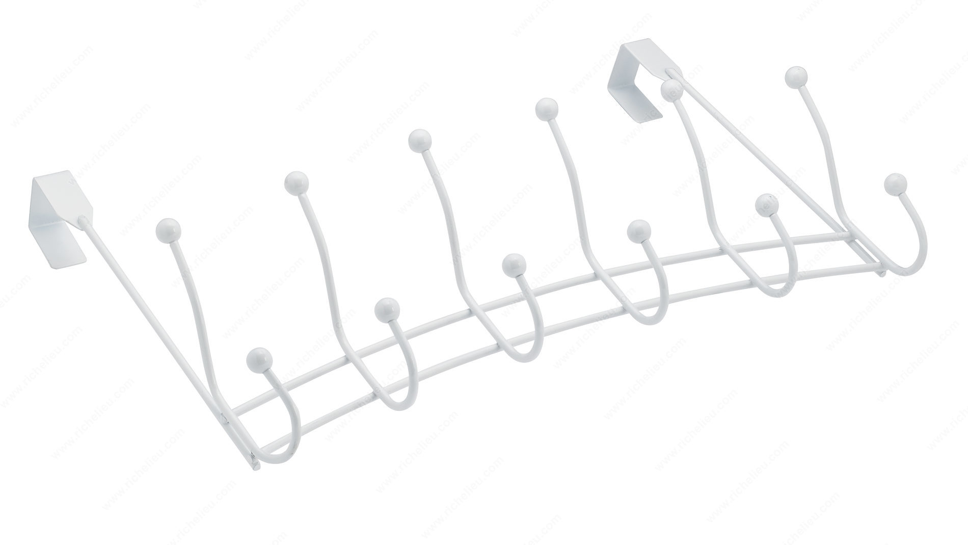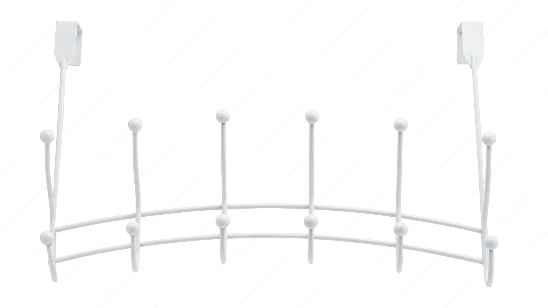 Richelieu T7260130 Utility Over-The-Door Hook-726 offers a blend of practicality and elegance, making it an excellent solution for your storage needs. This stylish over-the-door double hook is designed to address any closet challenge while maintaining a sleek appearance. Crafted from durable metal, it features a clean white finish that seamlessly integrates into various décor styles. With overall dimensions of 12 5/8 inches in height, 20 3/8 inches in width, and a projection of 2 27/32 inches, this utility hook is space-efficient and functional. It boasts a generous load capacity of 22 pounds, allowing you to hang multiple items securely without worry. One of the standout features of this hook is its easy installation-no screws or nails are required, making it a quick and hassle-free addition to your home. Whether you're looking to organize coats, bags, or accessories, the Richelieu Utility Over-The-Door Hook is an ideal choice. Its practical design not only enhances your storage options but also adds an element of sophistication to your space. Upgrade your organizational solutions with this versatile hook that combines style with functionality.