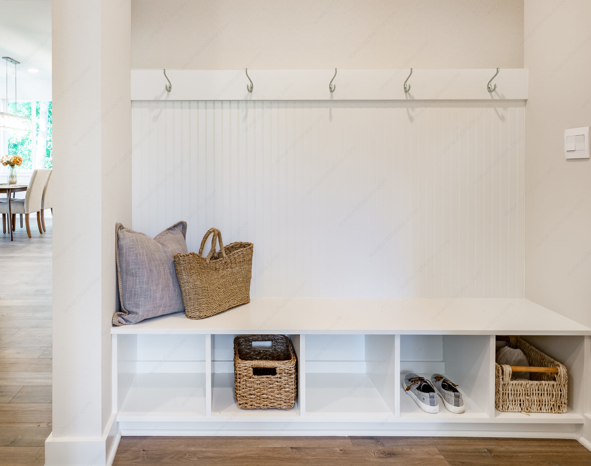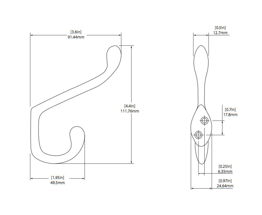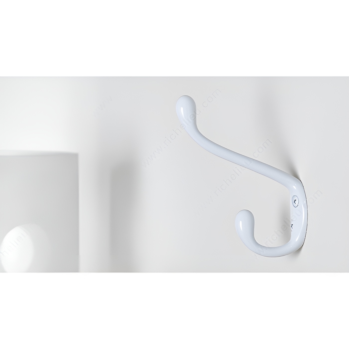 Richelieu T7830130 4 in Utility Hook - 783 offers a practical solution for keeping your space organized and clutter-free. This versatile double hook is designed to hold up to 22 pounds, making it perfect for hanging coats, hats, bags, and other everyday items. Crafted from durable metal and finished in a clean, white color, this hook seamlessly blends with any décor while enhancing the functionality of your entryway, mudroom, or garage. Measuring 4 13/32 inches in height, with an overall projection of 3 19/32 inches and a width of 31/32 inches, the compact design allows for effective use of vertical space without overwhelming your walls. The utility style ensures ease of use, while the included screws make installation straightforward and hassle-free. Whether you’re a building professional looking to provide clients with smart storage solutions, or a homeowner seeking to simplify your life, the Richelieu T7830130 hook is an excellent choice. Its robust construction and minimalist design not only serve a practical purpose but also contribute to a tidy and orderly environment. Elevate your organizational game with this reliable utility hook from Richelieu.
