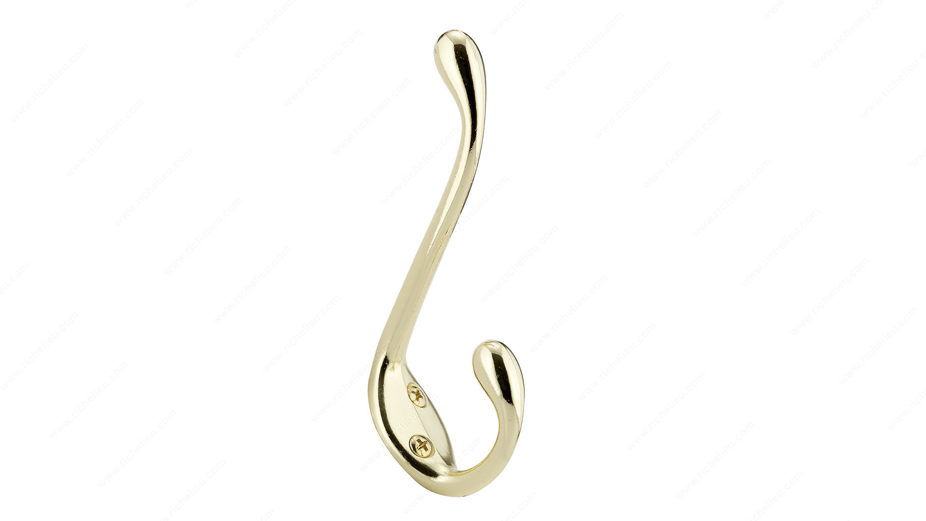 Richelieu T78308130 4 in Utility Hook - 783 offers a simple yet effective solution for organizing your space. Designed with functionality in mind, this robust double hook is perfect for hanging coats, hats, and other essentials, ensuring everything has its place. Made from durable metal, it boasts a striking yellow and brass color combination, which not only adds a touch of style but also blends seamlessly with various decor themes. With an overall height of 4 13/32 inches, a projection of 3 19/32 inches, and a width of 31/32 inches, this utility hook is compact yet effective in maximizing vertical storage. It has an impressive load capacity of up to 22 pounds, allowing you to hang multiple items without worry. The included screws ensure easy installation, making it an ideal choice for both building professionals and homeowners looking to enhance their organization. Whether mounted in an entryway, laundry room, or closet, the Richelieu T78308130 Utility Hook transforms clutter into a well-ordered space. Its practical design and sturdy construction make it a reliable addition to any home or workspace, helping you focus on life’s bigger challenges.