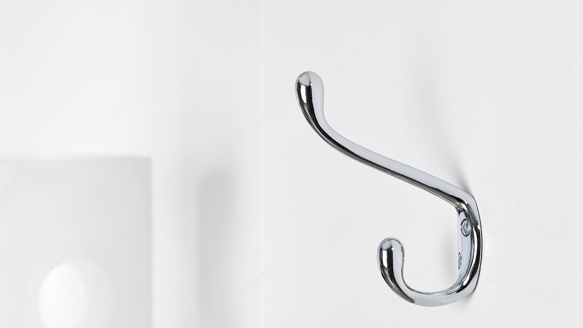 Richelieu T78309140 4 in Utility Hook - 783 offers a seamless solution for organizing your space efficiently. Designed with a sleek gray and chrome finish, this double hook combines functionality with a modern aesthetic, making it ideal for any area, from entryways to closets. Measuring 4 13/32 inches in height, with a projection of 3 19/32 inches and a width of 31/32 inches, it provides ample room to hang coats, hats, bags, and more. Crafted from durable metal, the utility hook boasts a robust load capacity of 22 lbs, ensuring it can handle your everyday items with ease. Installation is straightforward, as screws are included for hassle-free mounting. The simple design not only keeps your space tidy but also allows you to focus on life's bigger challenges, knowing that your essentials are well-organized and easily accessible. Whether you’re a building professional looking for reliable hardware or a knowledgeable homeowner aiming for smart organization, the Richelieu T78309140 Utility Hook is a practical choice. Elevate your storage solutions with this stylish and efficient hook that enhances both function and form in any setting.