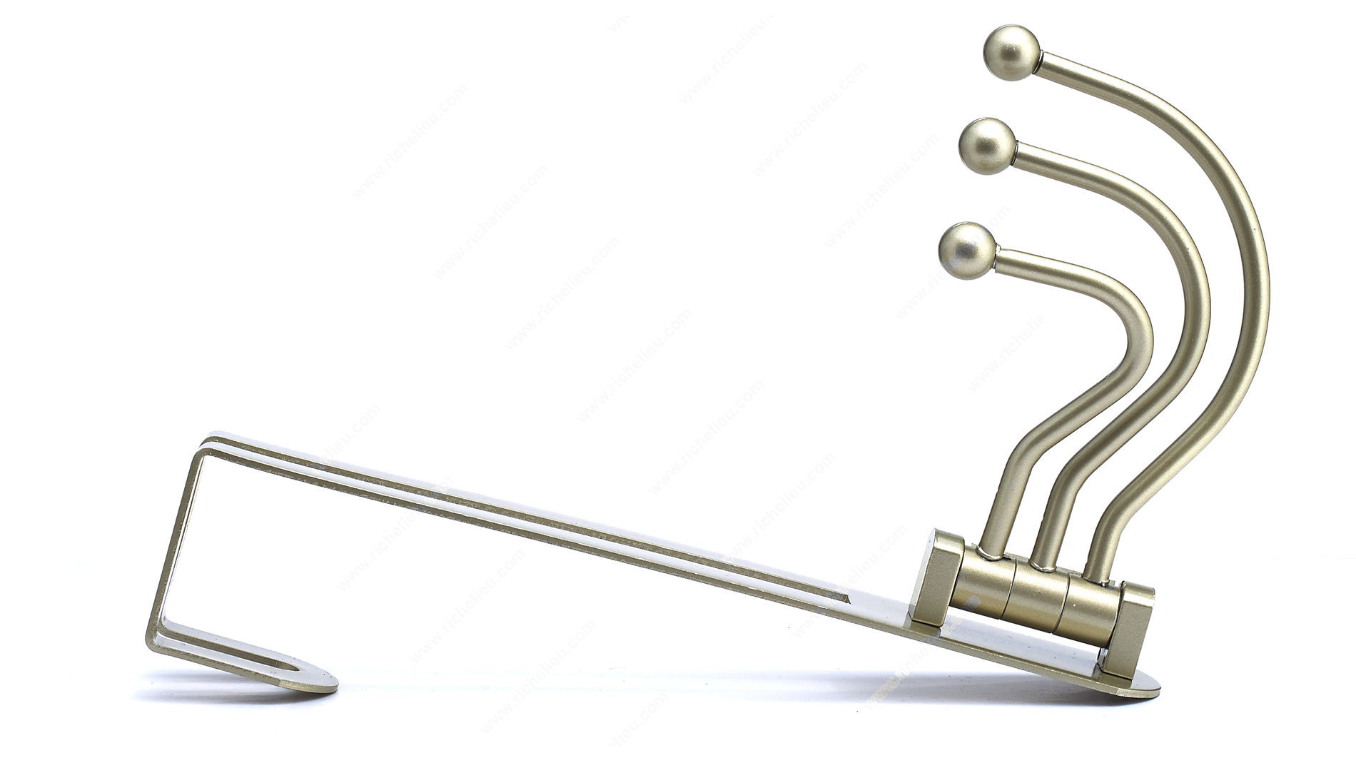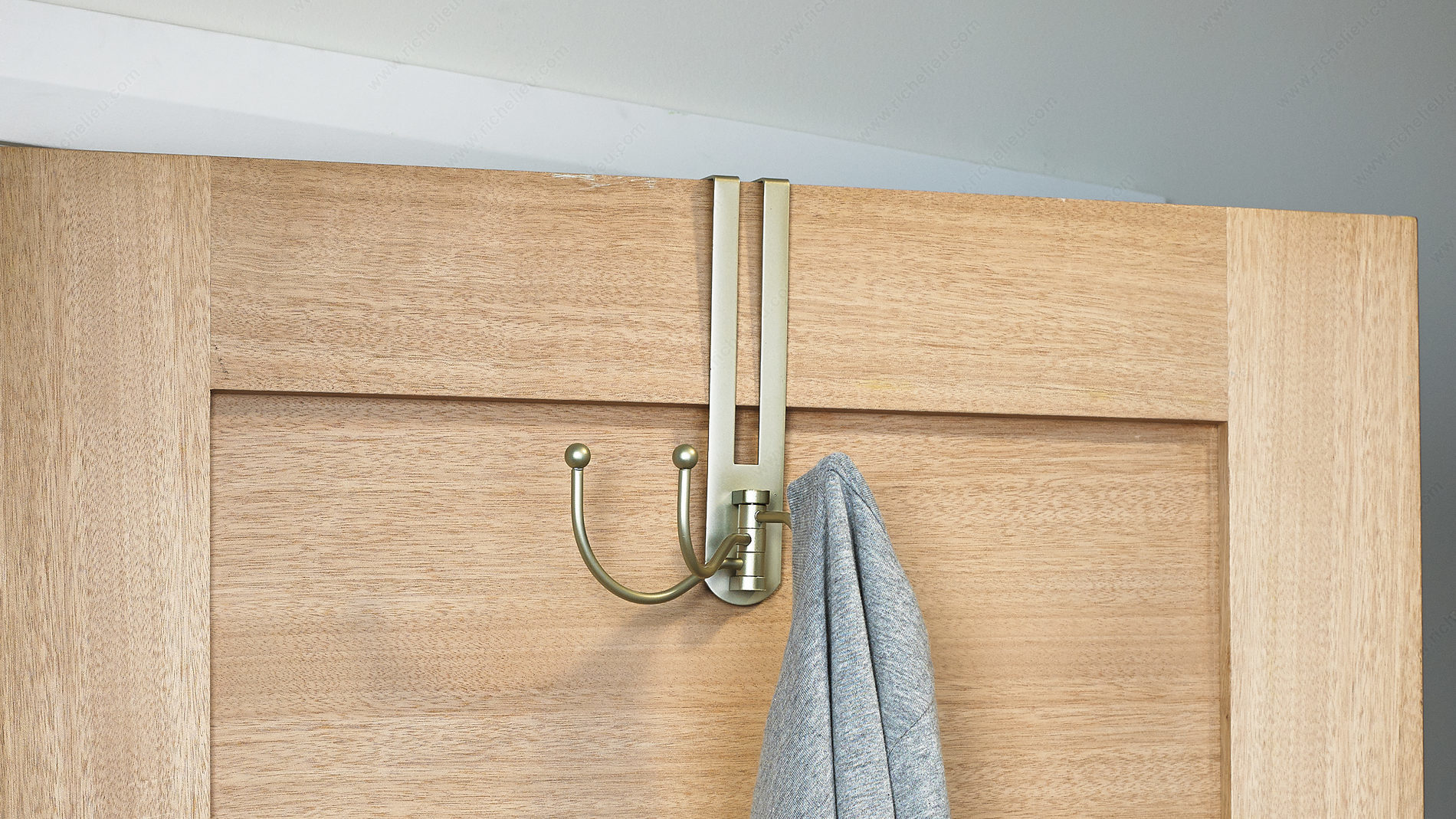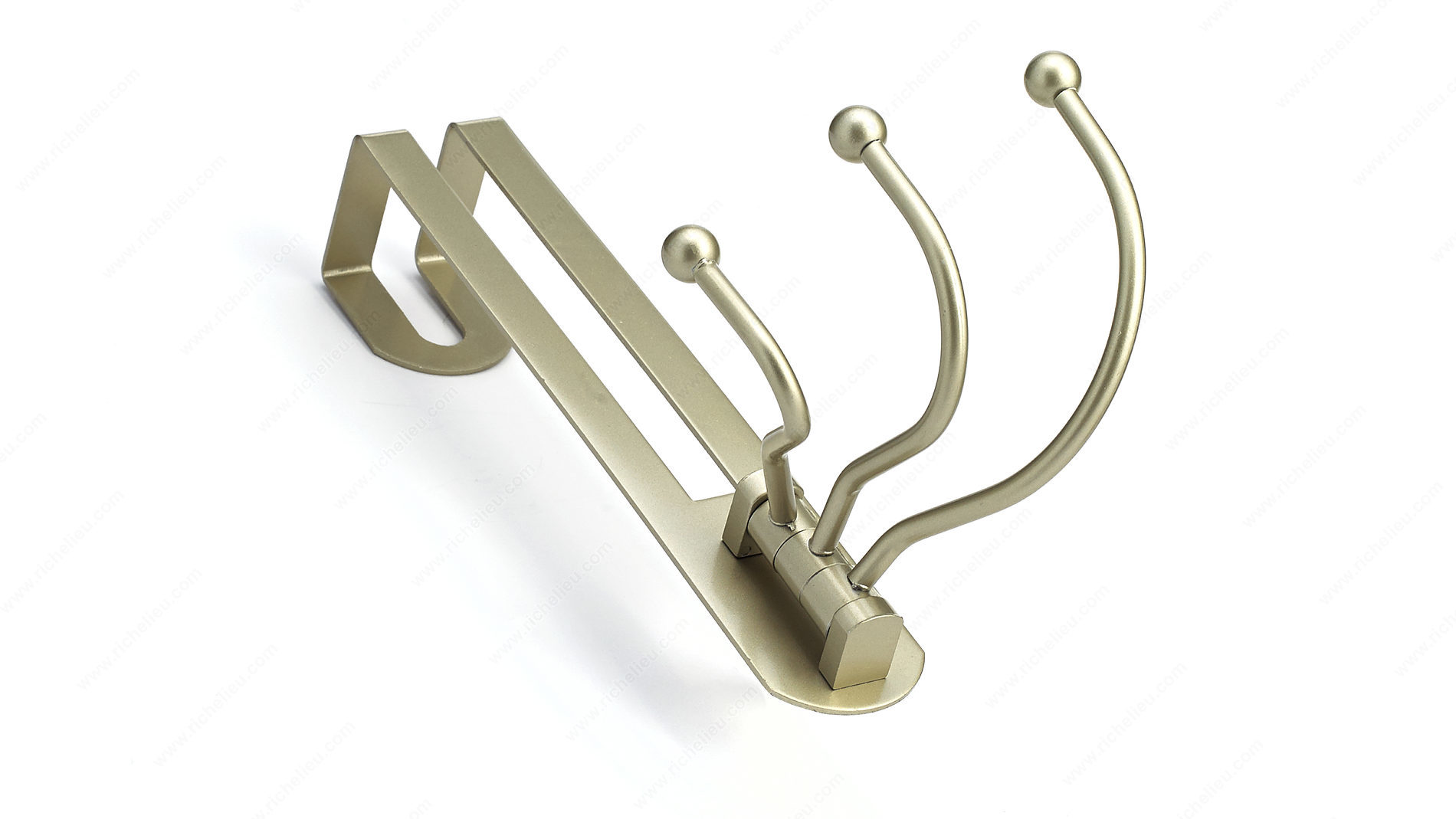 Richelieu T79921184 Utility Over-The-Door Hook - 799 offers a stylish and practical solution for optimizing your storage needs. Designed with three movable hooks that swivel, this utility hook allows you to customize your organization in bedrooms, bathrooms, mudrooms, closets, and more. Its sleek matte nickel finish, complemented by gray and chrome accents, enhances any space while maintaining a modern aesthetic. Measuring 8 15/32 inches in height, 1 9/16 inches in width, and projecting 4 13/32 inches from the door, this hook is engineered to fit standard interior doors seamlessly. With a robust load capacity of 22 pounds, it provides durable support for various items, from coats and bags to towels and accessories. The T79921184 is made from high-quality metal, ensuring longevity and reliability. Notably, installation is hassle-free, requiring no screws or nails, making it an ideal choice for those who value convenience. This versatile hook not only maximizes your vertical space but also adds a touch of elegance to your home décor. Upgrade your storage solution with Richelieu's Utility Over-The-Door Hook and experience the perfect blend of functionality and style.