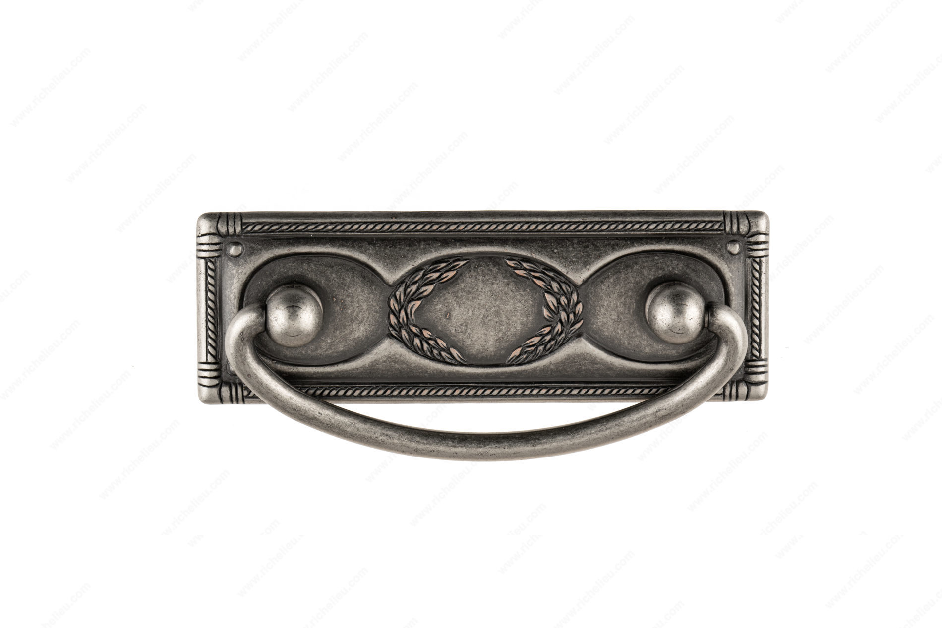 Richelieu 06323904 Traditional Brass Pull - 6323 is an exquisite art nouveau-inspired pull that brings an air of sophistication to any furniture piece or cabinetry. Crafted from high-quality brass, this pull showcases intricate detailing, making it a perfect addition for those seeking a classic yet stylish accent. With a center-to-center measurement of 2 17/32 inches, this pull fits seamlessly into a variety of applications. The overall dimensions are 3 13/16 inches in length, 1 23/32 inches in width, and a projection of 19/32 inches. The pull features a stunning faux iron finish, complemented by a gray and chrome color palette that enhances its art deco charm. Designed for ease of installation, the Richelieu Traditional Brass Pull comes with M4 screws included, ensuring a hassle-free setup. This pull not only elevates the aesthetic of your space but is built to last, offering durability and timeless appeal. Ideal for both building professionals and discerning homeowners, this piece exemplifies the perfect blend of functionality and style. Whether you're updating kitchen cabinets or enhancing furniture, the Richelieu 06323904 pull provides a refined touch that is sure to impress.