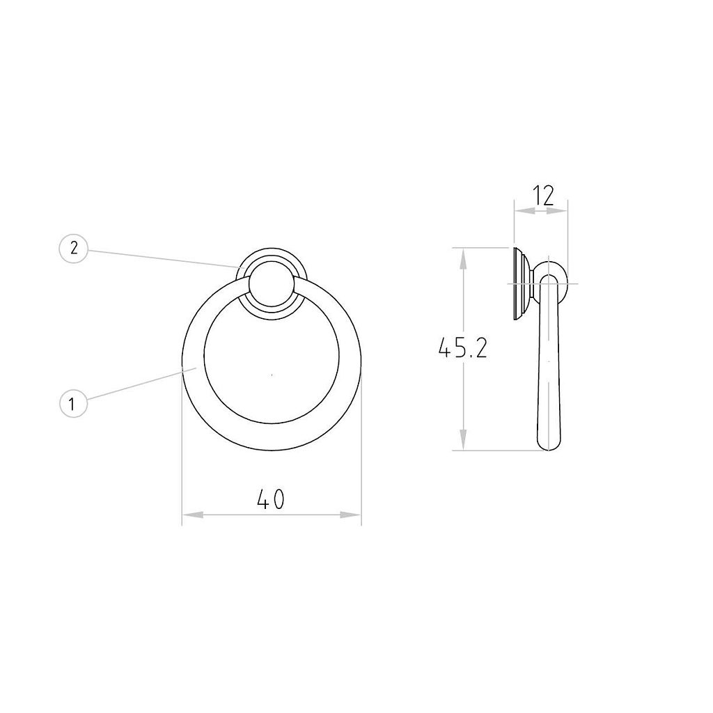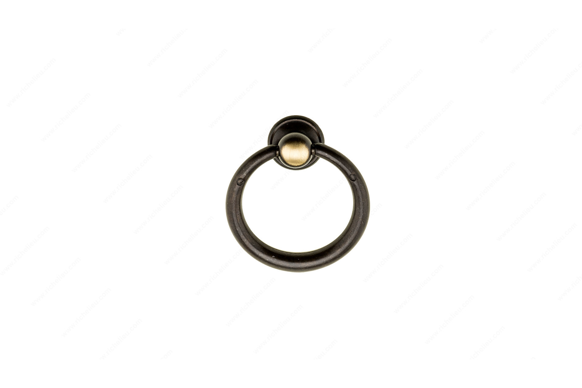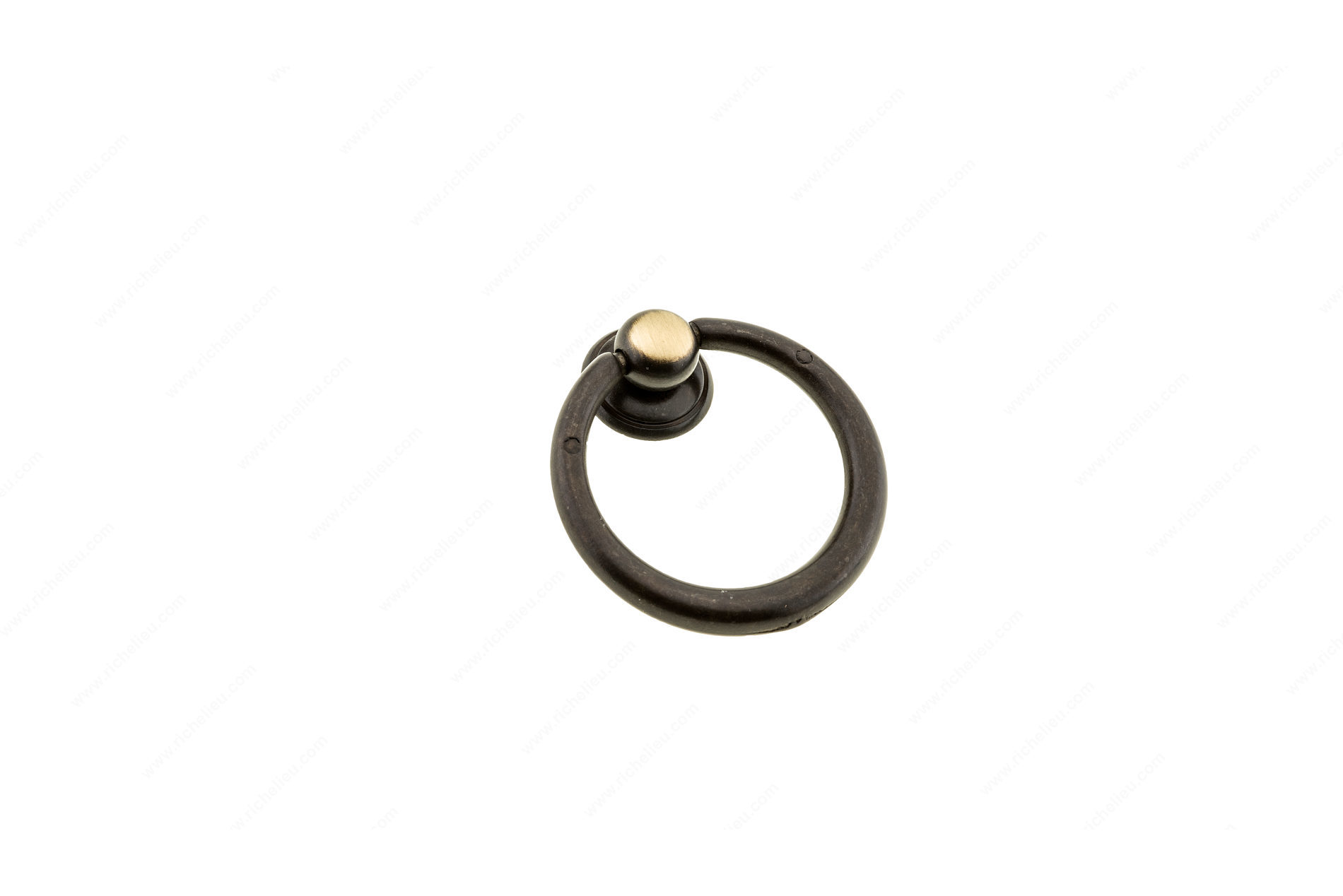 Richelieu BP920240164 Traditional Brass Pull - 9202 offers a charming touch to your cabinetry with its classic ring pull design, making it a nostalgic alternative to typical drawer front hardware. Crafted from high-quality brass, this pull not only enhances the aesthetics of your space but also ensures durability and longevity. Measuring 1 25/32 inches in length and 1 9/16 inches in width, the pull features a projection of 15/32 inches, making it easy to grasp while providing a sophisticated look. The satin bronze finish adds a warm touch, beautifully complementing the traditional style of the Povera collection. With a base diameter of 15 mm, this pull is designed for straightforward installation, utilizing M4 screws that are included for your convenience. Ideal for both building professionals and discerning homeowners, the Richelieu BP920240164 is perfect for enhancing kitchen cabinets, dressers, or any furniture needing a refined upgrade. Packaged in a bag for easy handling, this pull exemplifies quality craftsmanship and timeless design, ensuring your project stands out. Choose this elegant ring pull to seamlessly blend functionality with classic beauty in your home.