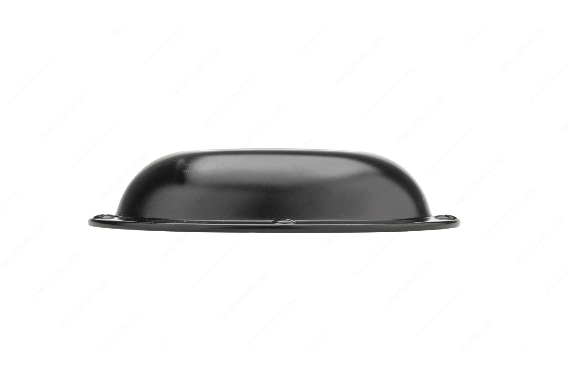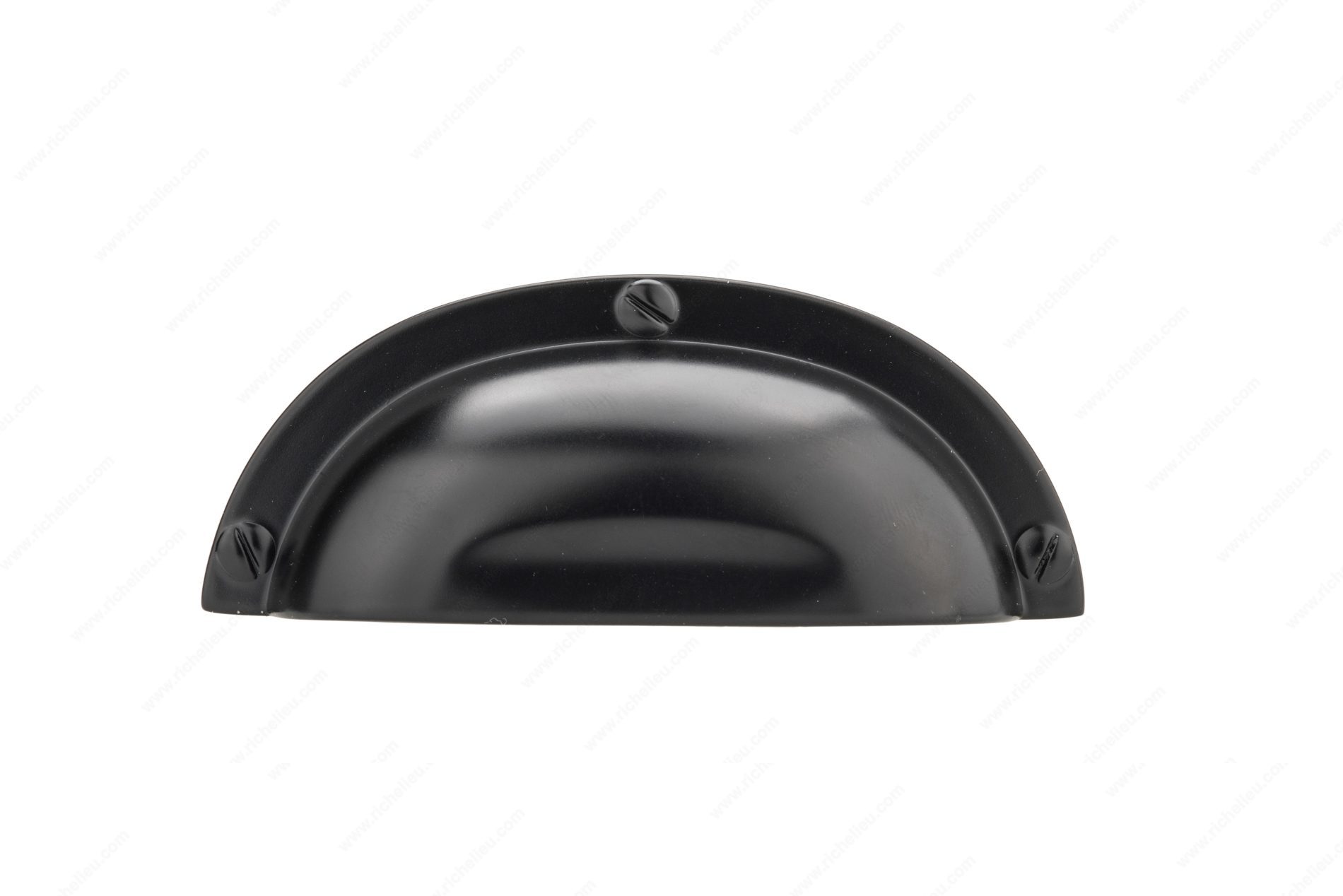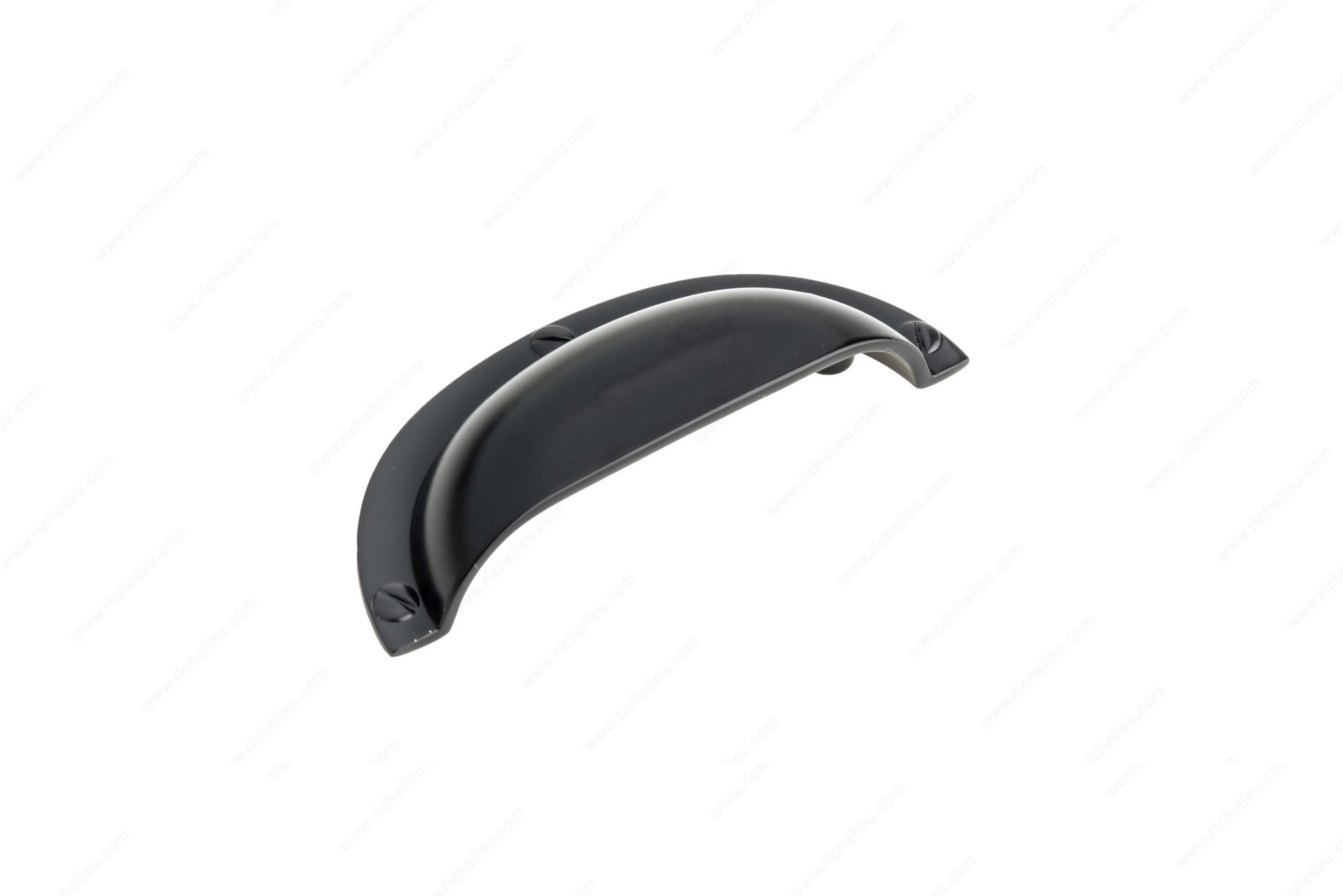Richelieu BP6440900 Traditional Metal Cup Pull - 6440 brings a touch of nostalgia to your furniture and cabinetry with its classic design. Crafted from durable zamak, this charming cup pull features a matte black finish that complements a variety of decor styles, particularly those inspired by traditional and Art Deco aesthetics. Measuring 3 25/32 inches in length with a width of 1 1/2 inches, the pull offers a comfortable grip while enhancing the overall appearance of your cabinets or drawers. The center-to-center measurement of 2 17/32 inches ensures compatibility with standard installation practices, making it easy to upgrade your space. The pull includes M4 screws for hassle-free mounting, allowing you to enhance your cabinetry quickly and efficiently. With a projection of 25/32 inches, the cup pull provides an understated yet stylish statement, perfect for kitchen renovations or furniture refurbishments. Part of Richelieu’s New Collection, this product exemplifies quality craftsmanship and timeless design. Packaged in a convenient bag, the BP6440900 is ready to ship via UPS, ensuring you receive your order promptly. Elevate your cabinetry with this elegant cup pull, blending functionality and classic charm seamlessly.