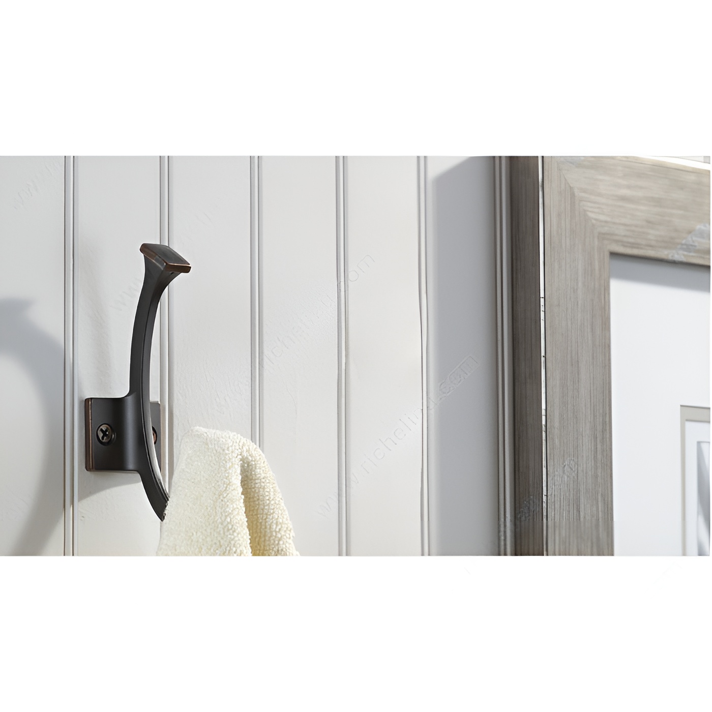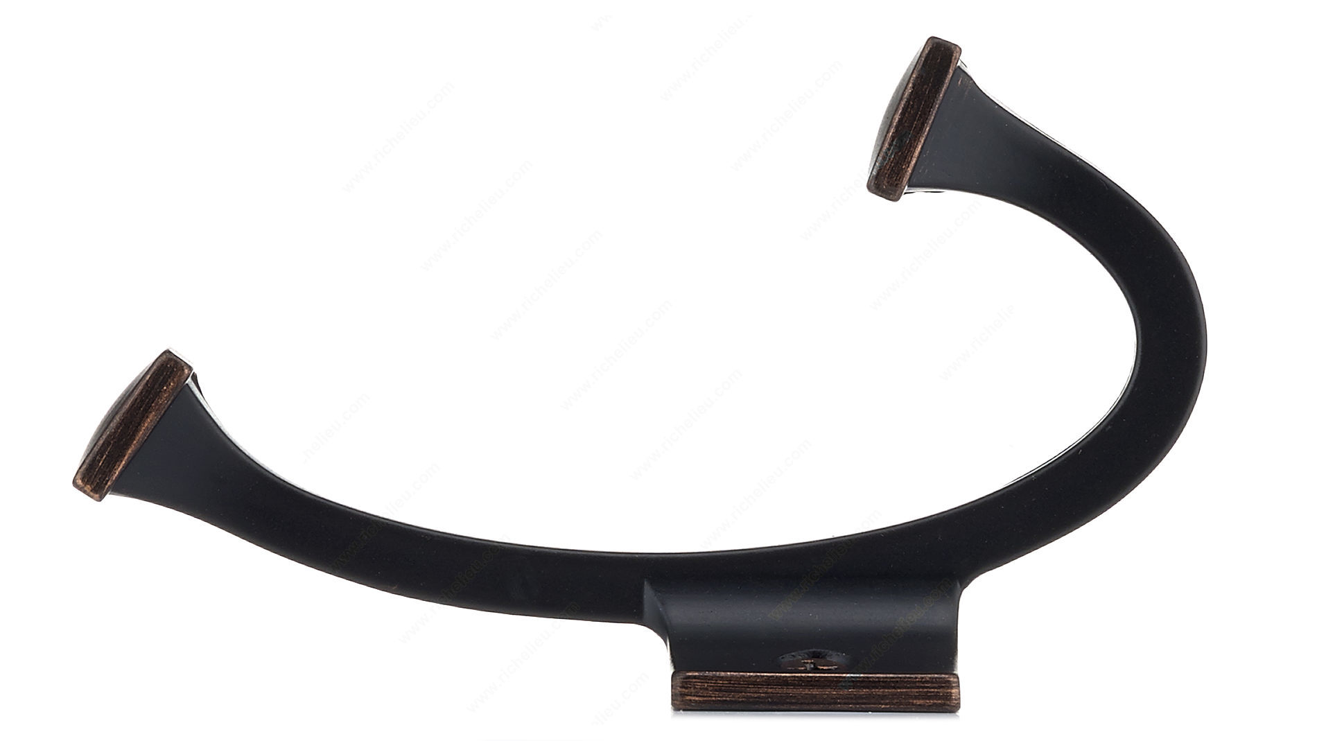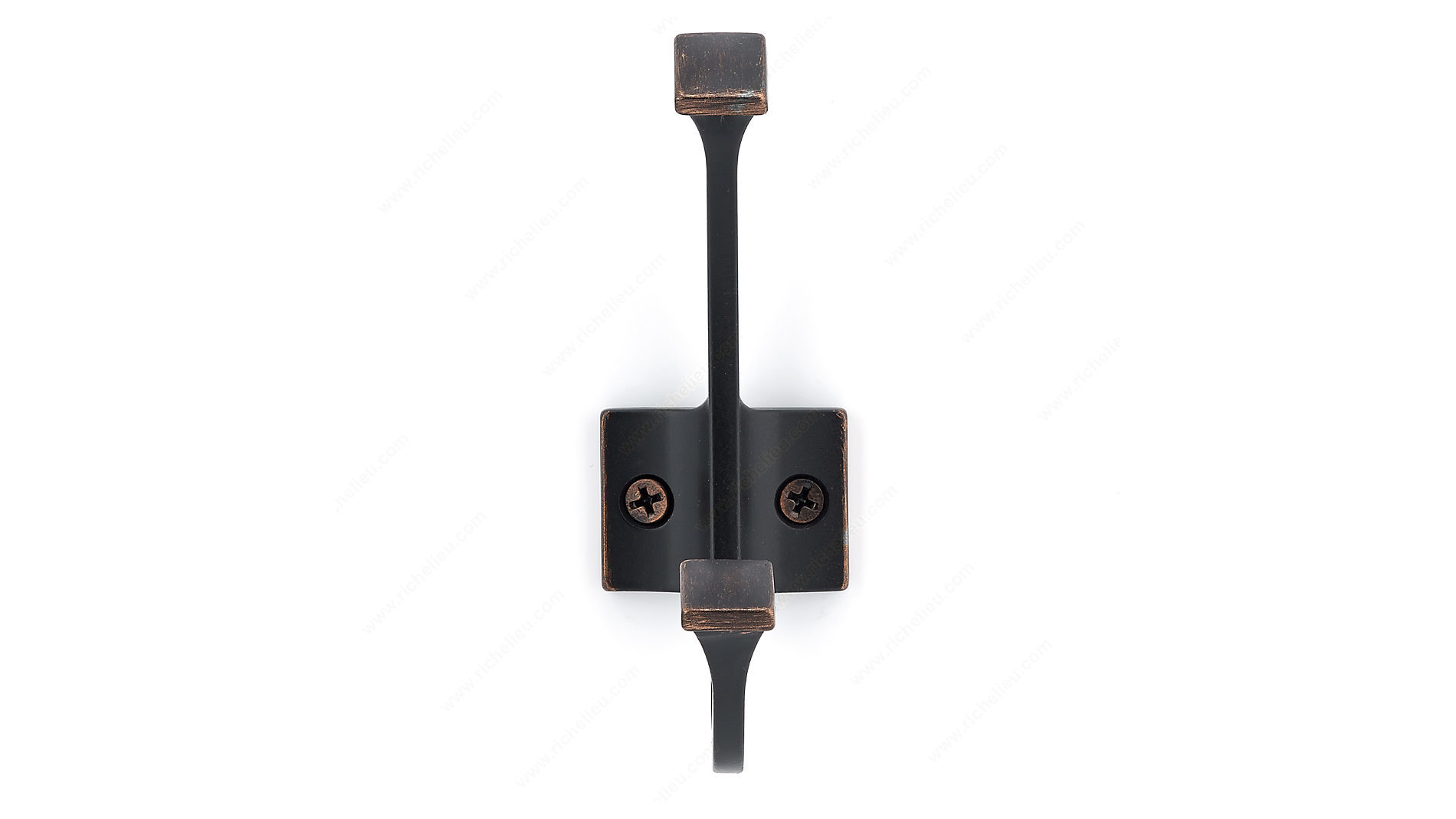 Richelieu NH025200BORB Transitional Metal Hook offers a perfect blend of style and functionality, making it an ideal addition to any space. Designed with a brushed oil-rubbed bronze finish, this dual-arm coat hook not only enhances your décor but also doubles your storage potential. Its transitional aesthetic seamlessly merges modern and classic elements, ensuring it complements a variety of interiors. Measuring 4 3/8 inches in height, 1 1/2 inches in width, and projecting 2 9/16 inches from the wall, this hook is versatile enough for use in bedrooms, bathrooms, entryways, mudrooms, and closets. With a robust load capacity of 22 pounds, it is suitable for hanging coats, bags, or towels with ease. The durable metal construction ensures it withstands daily use while adding a touch of elegance. Installation is straightforward, as the necessary screws are included, allowing you to mount this stylish hook on either walls or doors. Packaged in a blister format for convenient handling, the Richelieu NH025200BORB is a practical solution for those seeking both aesthetic appeal and reliable functionality in their storage solutions. Enhance your space with this functional piece that embodies quality and design.