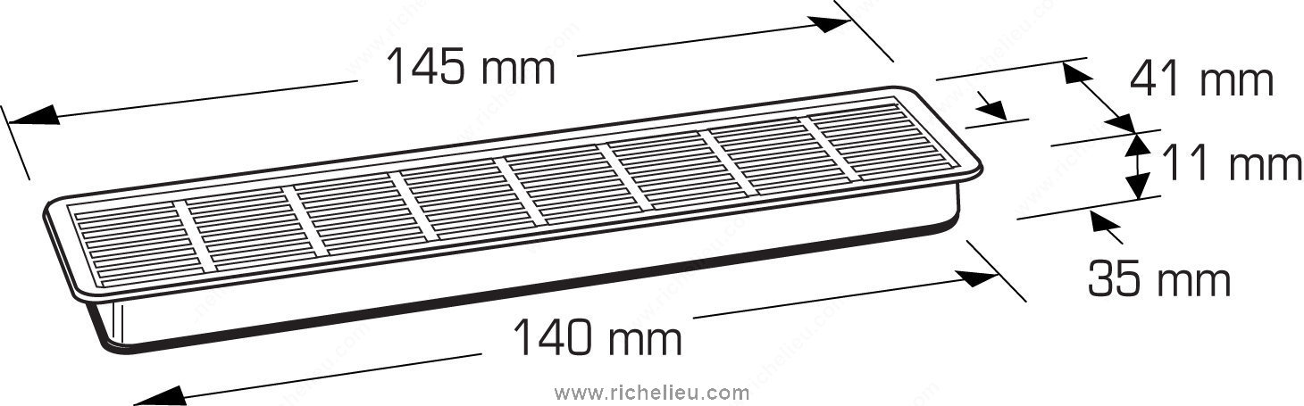 Richelieu 01052790 Ventilator Grill offers a sleek and functional solution for air circulation in various applications. Designed with precision, this grill features overall dimensions of 5 23/32 inches in length, 1 5/8 inches in width, and a height of just 7/16 inches, making it an ideal choice for tight spaces where airflow is essential. Crafted from durable polystyrene, the grill is finished in a contemporary black color, ensuring it seamlessly integrates into any setting without compromising aesthetic appeal. The drilling dimensions, measuring 5 1/2 inches in length and 1 3/8 inches in width, facilitate straightforward installation, allowing building professionals and homeowners alike to enhance their environments with ease. Richelieu’s commitment to quality ensures that this ventilator grill not only meets functional needs but also stands the test of time. Whether used in kitchens, bathrooms, or other areas requiring ventilation, this product efficiently balances design and practicality. Additionally, it ships conveniently via UPS, making it a hassle-free addition to your project. Elevate your ventilation solutions with the Richelieu 01052790 Ventilator Grill, where style meets functionality in every detail.