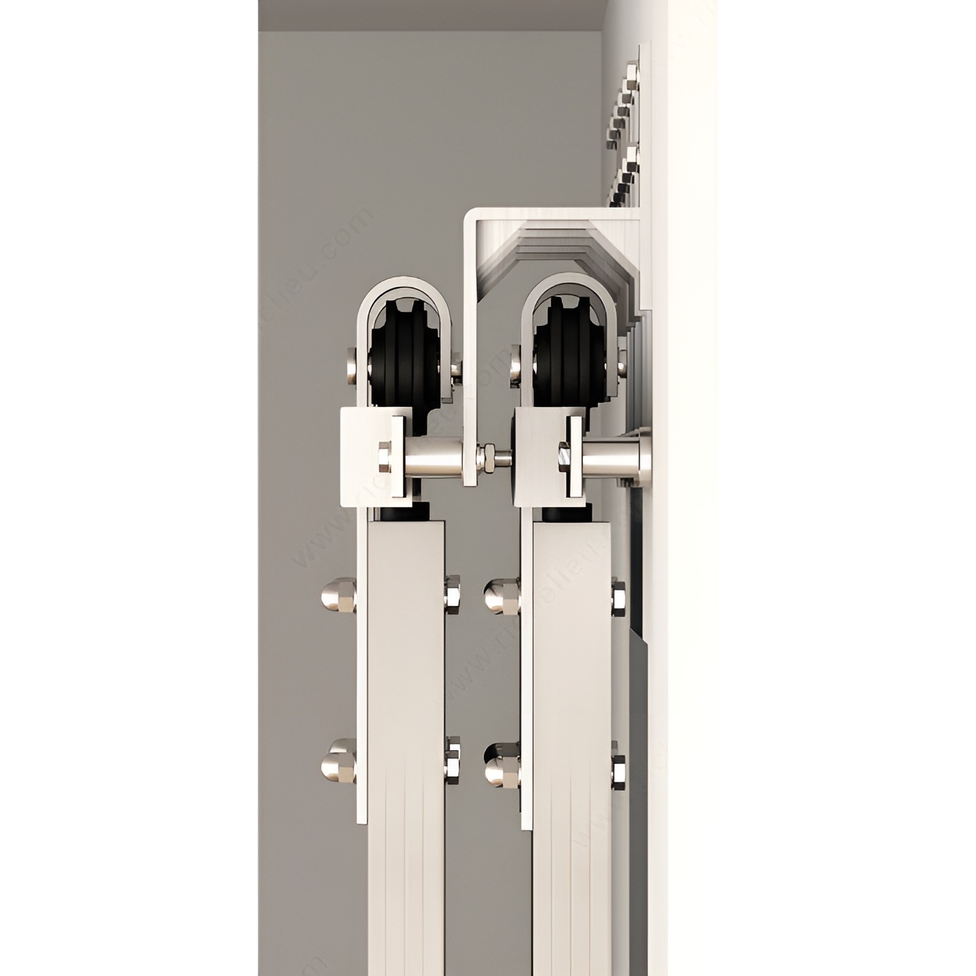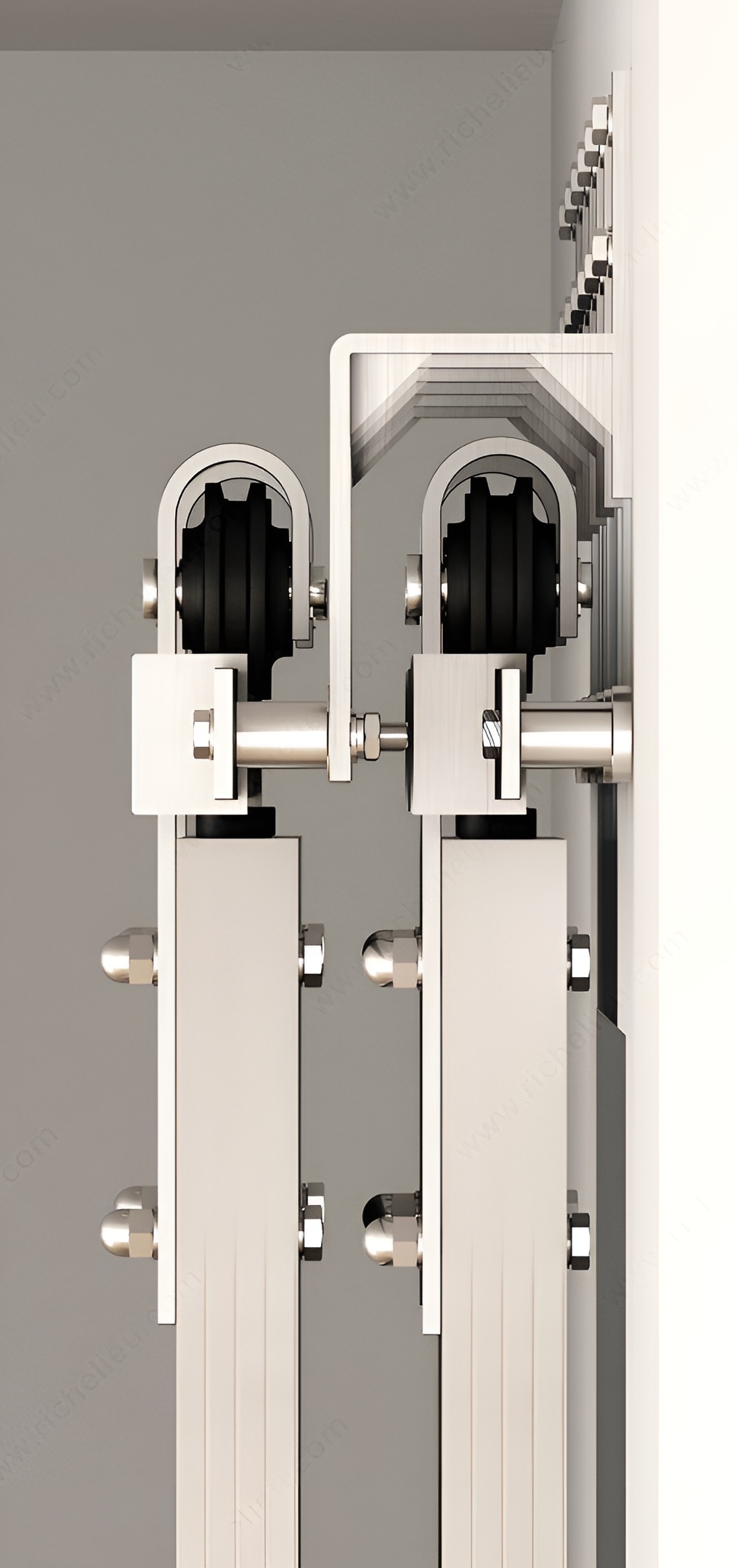 Richelieu 2462045007170 Wall Mount Bracket for Barn Door Flat Bar Tracks offers a robust solution for bypass applications, ensuring seamless operation for your closet or walk-in closet. Designed specifically for flat bar tracks, this wall mount bracket is essential for supporting the movement of bypassing doors, allowing them to elegantly slide in front of the wall. Constructed from high-quality stainless steel, this bracket not only provides durability but also features a sleek finish that complements modern interior designs. With a load capacity ranging from 176 to 220 lbs, it is engineered to securely hold the weight of your doors and hardware, provided it is mounted to a solid structure. For standard drywall stud frames, solid blocking is necessary to prevent drywall compression, ensuring your installation remains stable and reliable. Each bracket set corresponds to a specific fastening point, allowing for customized installations tailored to your space. This bracket is designed for upper roller positioning, promoting smooth door movement and enhancing accessibility. With easy shipping via UPS, enhancing your interior with the Richelieu Wall Mount Bracket is both convenient and efficient. Upgrade your space with this essential mounting accessory that combines strength, functionality, and style.