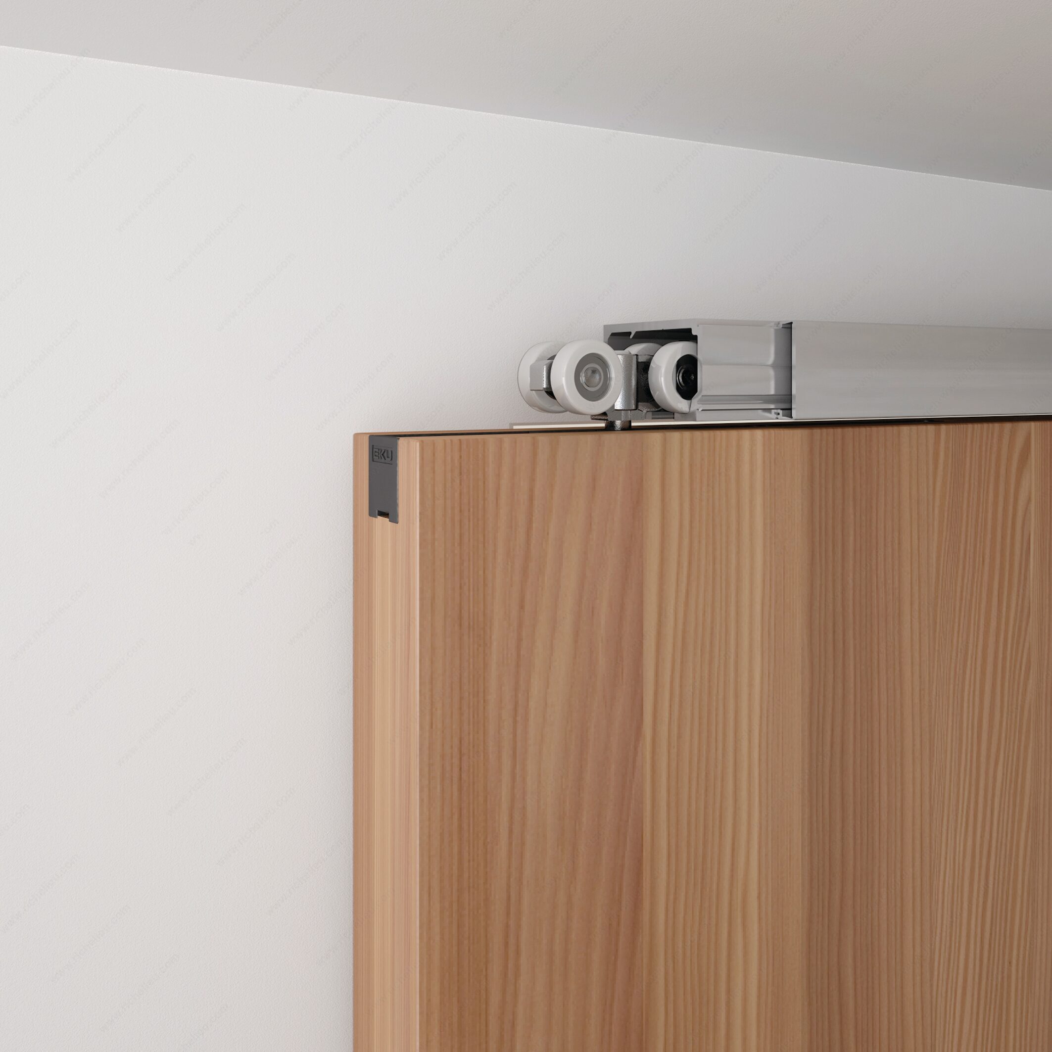 - Rebate/mortise mount suspension plate for the top of the door