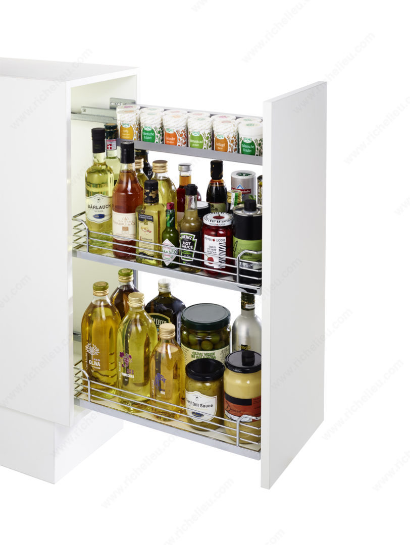 Richelieu WEBKIT1214666 Comfort II Pull-Out Frame - Height 500 mm offers a versatile solution for enhancing the functionality of base cabinets. Designed specifically for pull-out basket systems, this frame maximizes storage efficiency while ensuring easy access to your kitchen essentials. Crafted from durable metal, it boasts a sleek chrome and maple finish that adds a modern touch to any cabinetry. This frame requires specific interior dimensions for optimal installation: a minimum depth of 19 1/2 inches, height of 20 3/4 inches, and width of 5 23/32 inches. Its compact dimensions-18 5/8 inches in depth, 19 3/4 inches in height, and 4 11/32 inches in width-make it suitable for various cabinet sizes. The left-side opening facilitates convenient access, while the right-side installation ensures compatibility with most kitchen layouts. The inclusion of a soft-stop mechanism enhances user experience by providing a gentle and controlled pull-out function. With the product number WEBKIT1214666, this frame is designed to ship via UPS, making it a practical choice for professionals and homeowners alike. Upgrade your kitchen storage solutions with the Richelieu Comfort II Pull-Out Frame, where functionality meets style.