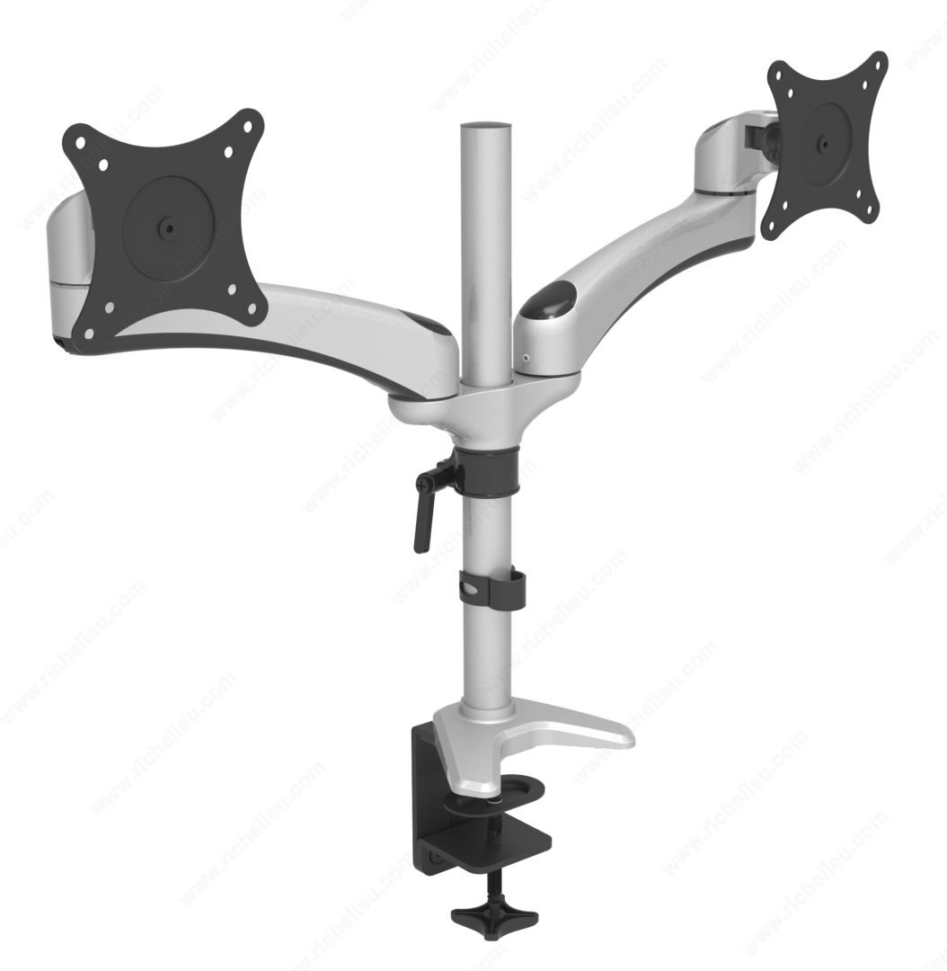 Richelieu WEBKIT1215245 Flexa Build Fixed Monitor ArmRichelieu WEBKIT1215245 Flexa Build Fixed Monitor Arm offers a versatile solution for your workspace, designed to enhance comfort and productivity. This fixed monitor arm system stands out as one of the best basic solutions on the market, featuring a robust steel construction that supports monitors weighing between 2.2 and 17.6 lbs. Height adjustment is made easy with a pole that can be adjusted by 11.5 inches, allowing users to customize their viewing experience. The monitor arm provides a full range of motion with a swivel capability of 90° to -90° and a tilt range of 45° to -90°, ensuring optimal positioning. Additionally, the 360° monitor rotation allows for seamless transitions between landscape and portrait modes, making it ideal for various tasks. The Flexa arm includes a two-in-one mounting base, which accommodates both clamp and grommet hole mounting options, offering flexibility in installation. Integrated cable management keeps your workspace tidy, eliminating clutter and distractions. Furthermore, the system allows for expansion, letting you easily configure setups for dual or triple monitors as your needs evolve. With an elegant silver finish, the Richelieu Flexa Build Fixed Monitor Arm combines functionality with a sleek design, making it a perfect addition to any professional or home office environment.