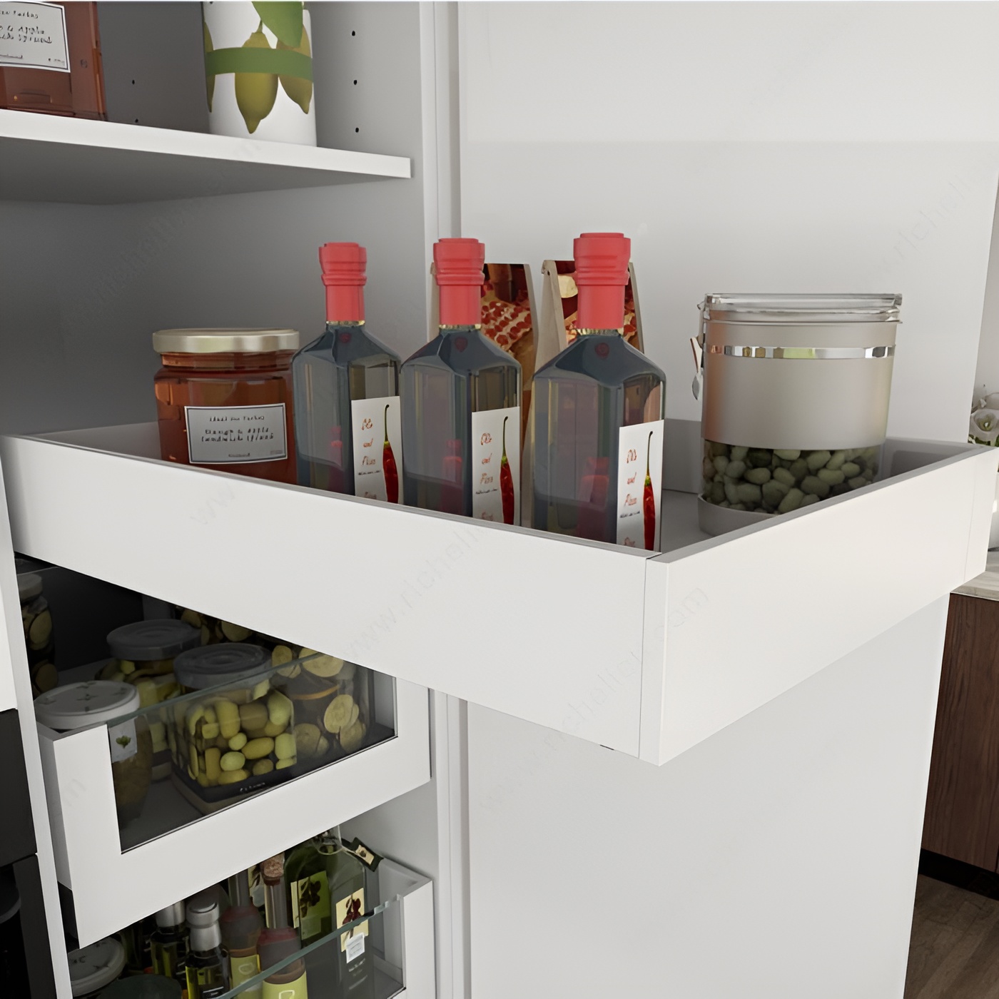 Richelieu WEBKIT1215789 OPTIMIZ-R 89 mm - Set for Inner Drawers presents an innovative solution for maximizing storage space within your cabinetry. This metal drawer system features slim double wall panels, designed to keep your storage streamlined and efficient. With a height of 3 1/2 inches and a length of 21 5/8 inches, this system is perfect for various applications, particularly in roll-out configurations. The OPTIMIZ-R drawer system ensures a smooth and soft-closing operation when paired with Richelieu’s 828 Concealed Synchronized Slides. Its sturdy steel construction supports a load capacity of up to 99.2 pounds, providing peace of mind for heavier items. The full extension undermounted slide technology allows for easy access to the entire drawer's contents, enhancing your overall organizational capabilities. Adjustment is flexible with four-way height and lateral adjustments via FLD clips, ensuring a precise fit in your cabinetry. Finished in a clean white, this drawer system seamlessly integrates into any design aesthetic. With a minimum purchase requirement of 10 sets, Richelieu’s OPTIMIZ-R is ideal for builders and professionals looking to enhance storage functionality while maintaining a modern look. Ship via UPS for convenience and efficiency.