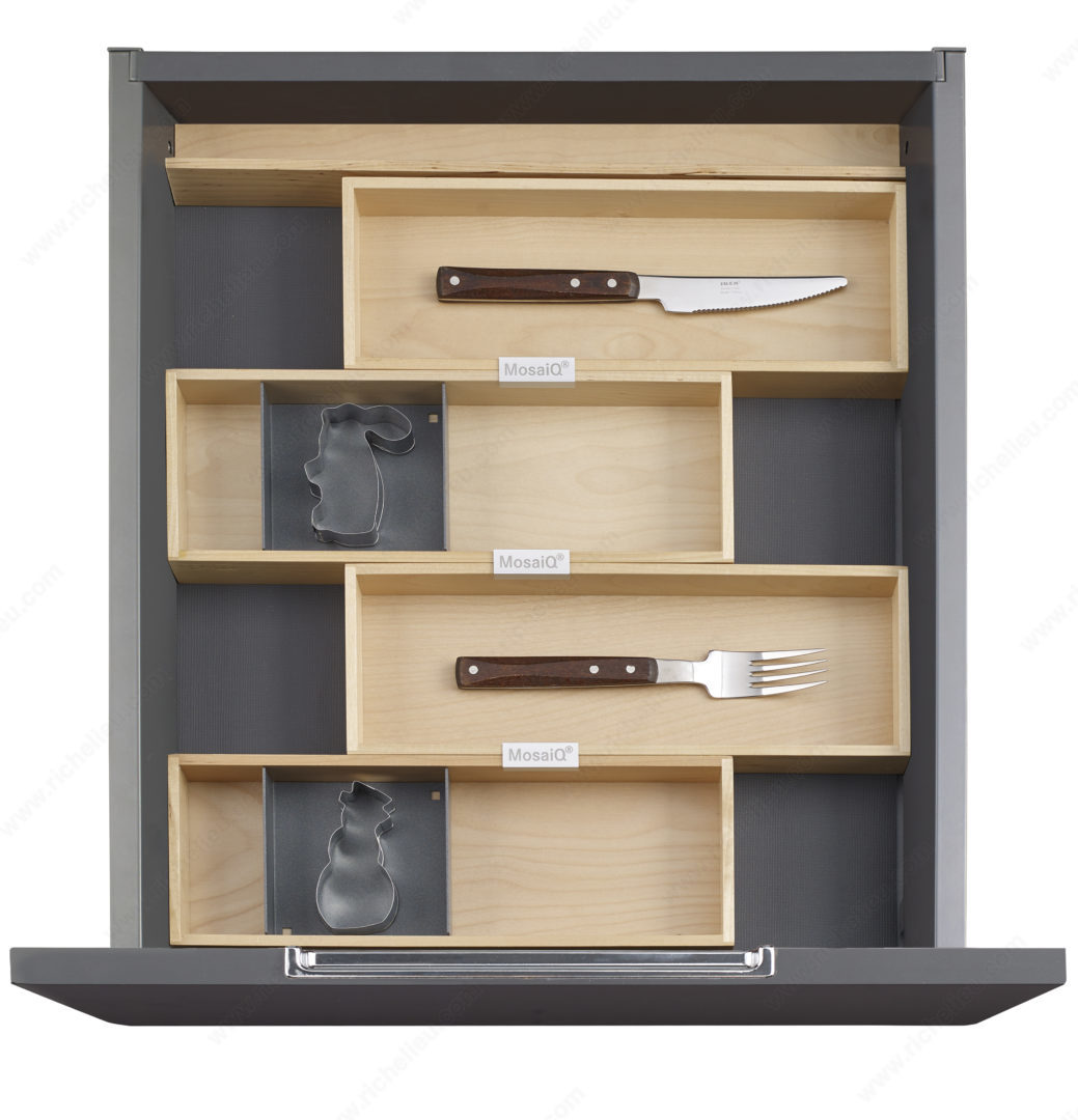 Richelieu WEBKIT1216958 Milan - Complete Set of Drawer Dividers offers the ideal solution for achieving both functionality and aesthetic appeal in your storage spaces. Designed with clean, contemporary lines, this complete set helps you organize your drawers efficiently, providing a clear overview of contents for quick and easy access. Crafted from high-quality birch, these dividers fit seamlessly into drawers with interior depths of 16 3/4 in. The adjustable width accommodates drawers ranging from 12 to 21 5/8 in, ensuring versatility for various drawer sizes. With a height of 1 11/16 in, this system keeps your items neatly separated while maximizing available space. Installation is a breeze-especially since the horizontal extension is not required for drawers with a depth of 424 mm (16 3/4 in). Whether you’re organizing utensils, office supplies, or craft materials, the Richelieu Milan dividers provide an elegant, practical solution for drawer organization. This product ships via UPS and is designed specifically for storage applications, making it an excellent choice for both building professionals and discerning homeowners looking to enhance their storage solutions. Transform your cluttered drawers into orderly spaces with the Richelieu Milan Complete Set of Drawer Dividers.