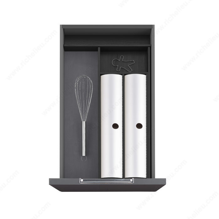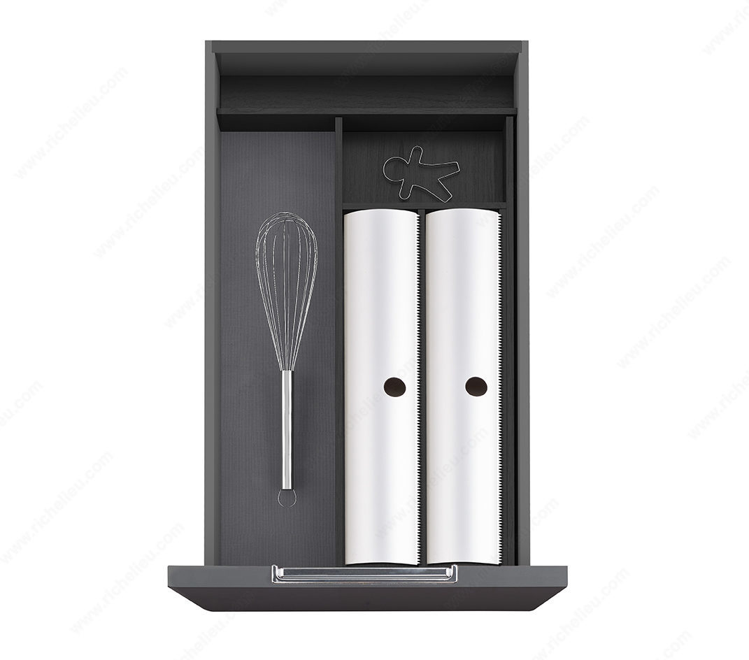 Richelieu WEBKIT1217141 Dublin - Complete Set of Drawer Dividers offers an ideal solution for enhancing drawer organization with its sleek and modern design. This complete set is engineered to provide optimal functionality while presenting a clean aesthetic that complements any storage area. With the ability to transform a cluttered drawer into a well-ordered space, this system allows for a clear overview and easy access to your items. The dividers are designed to fit interior drawer depths ranging from 18 1/4 to 20 7/8 inches and widths from 6 1/16 to 9 9/16 inches, making them versatile for various drawer sizes. Importantly, the horizontal extension is not required for installations with a depth of 424 mm (16 3/4 in), simplifying the setup process. Crafted in a stylish Black Ash finish, the dividers not only serve a practical purpose but also enhance the visual appeal of your drawers. With a height of 1 11/16 inches and a width of 5 29/32 inches, these dividers are perfectly sized for effective organization. Designed for easy shipping via UPS, the Richelieu WEBKIT1217141 Dublin dividers are the perfect choice for anyone looking to elevate their storage solutions.