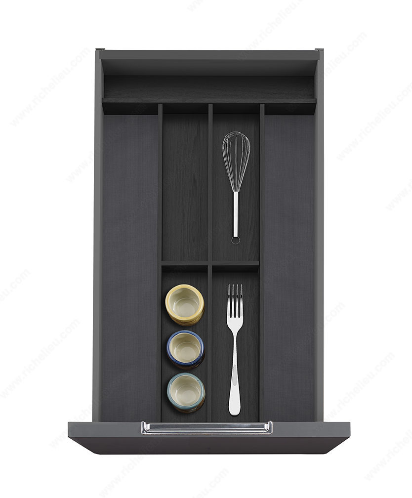 Richelieu WEBKIT1217155 Honolulu - Complete Set of Drawer Dividers offers a seamless blend of functionality and modern design, making it an essential addition to your storage solutions. This set is specifically crafted to enhance drawer organization with clean, contemporary lines and optimally arranged components, ensuring everything has its place. The dividers are designed for interior drawer depths ranging from 18 1/4 to 20 7/8 inches, and widths between 6 1/16 and 9 9/16 inches, allowing for versatile use in various drawer sizes. With a height of just 1 11/16 inches, these dividers maximize your drawer space without compromising on accessibility. The sleek Black Ash finish adds a touch of sophistication, making it an attractive choice for any home or professional setting. Installation is straightforward, as the horizontal extension is unnecessary for drawers with a depth of 424 mm (16 3/4 in), allowing for a hassle-free setup. Enjoy a clear overview and easy access to your drawer contents in minutes with this effective storage solution. Ship via UPS for added convenience. Upgrade your organization today with the Richelieu WEBKIT1217155 Honolulu set, perfect for anyone looking to streamline their storage space.