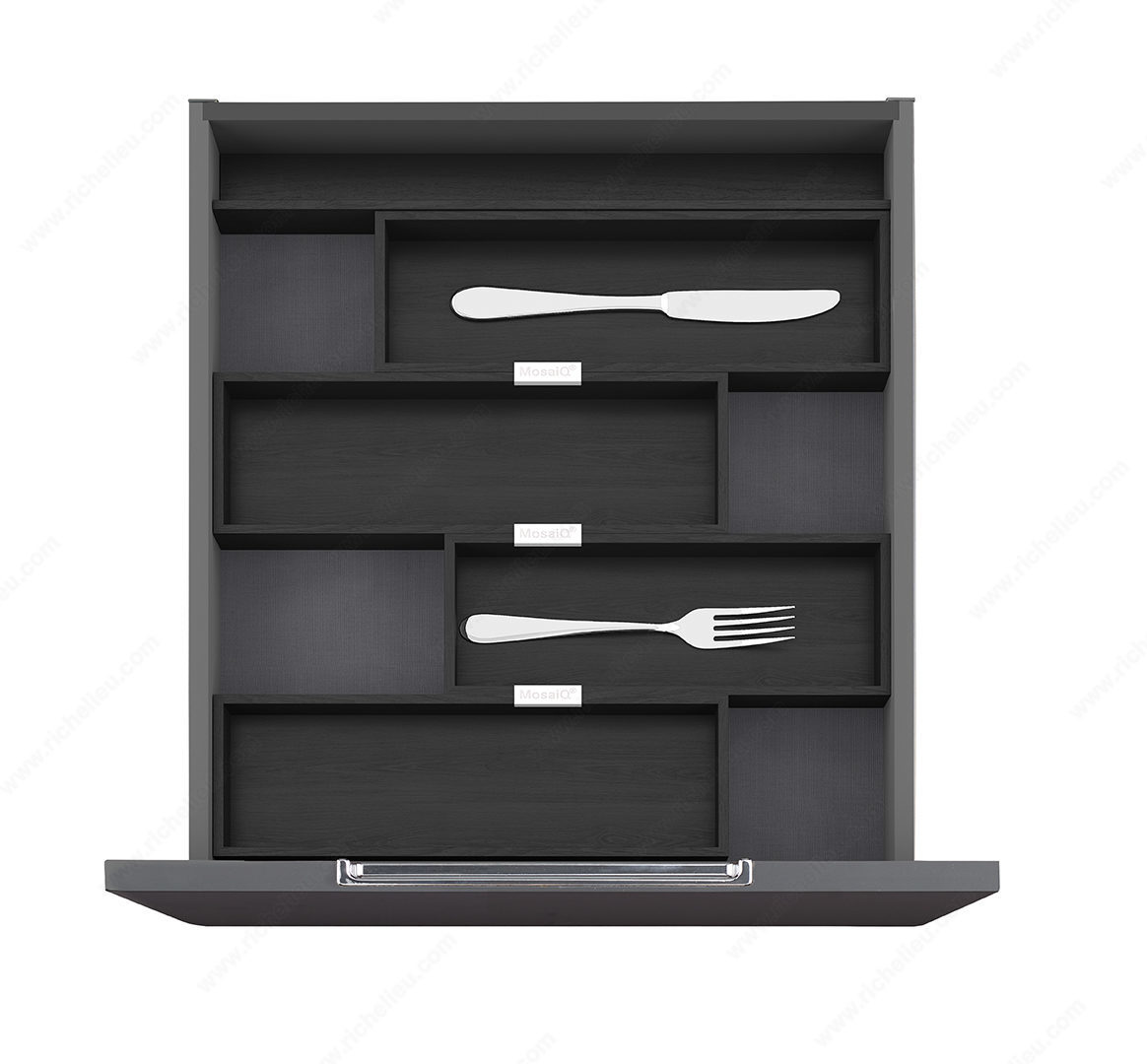 Richelieu WEBKIT1217195 Frankfurt - Complete Set of Drawer Dividers offers a seamless blend of functionality and modern design, making it an essential accessory for any organized space. This complete set features clean lines and thoughtfully arranged components that allow you to optimize drawer space efficiently. With this system, you can achieve a clear overview of your drawer contents, ensuring that everything is easily accessible within moments. Designed to fit interior drawer depths of 16 3/4 inches, this versatile set accommodates widths ranging from 12 to 21 5/8 inches, providing flexibility for various drawer sizes. The elegant Black Ash finish adds a touch of sophistication, enhancing the aesthetic appeal of your cabinetry. Notably, the horizontal extension is not necessary for installations that meet the specified depth, simplifying the setup process. Whether you're organizing cutlery, office supplies, or crafting materials, the Richelieu drawer dividers deliver a practical solution that transforms clutter into order. With the convenience of shipping via UPS, getting your hands on this innovative organization tool is easy. Elevate your storage solutions with Richelieu WEBKIT1217195, where style meets efficiency in every drawer.