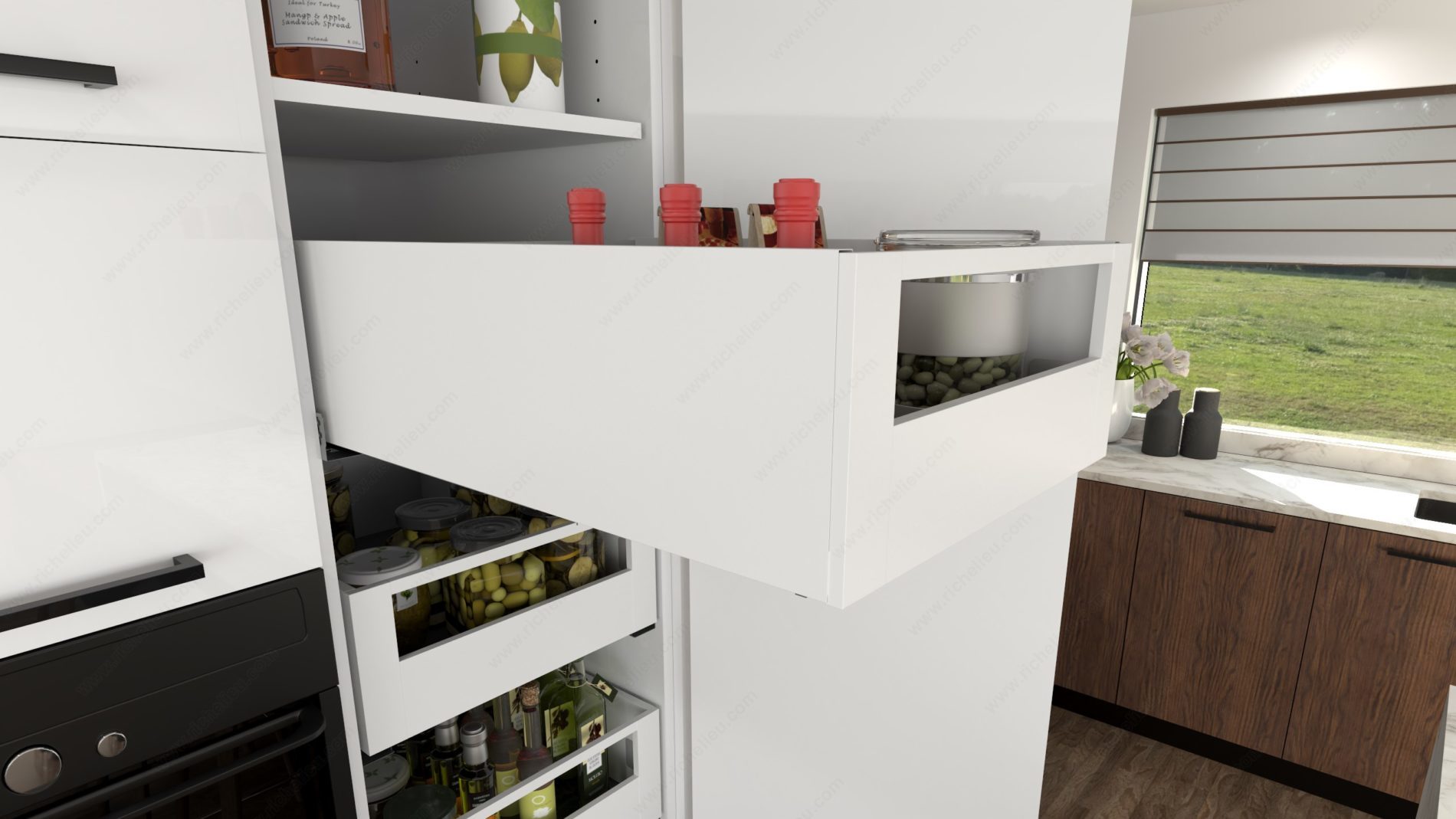 Richelieu WEBKIT1220190 OPTIMIZ-R 185 mm - Set for Inner Drawers is designed to enhance storage efficiency in any space. This innovative drawer system features slim double wall panels, ensuring a minimalist aesthetic while maximizing capacity. With a polished white finish, it seamlessly integrates into various decor styles, making it an excellent choice for modern kitchens and other areas. The OPTIMIZ-R drawer system is built for smooth functionality, offering a soft-close motion that prevents slamming and ensures quiet operation. It pairs perfectly with the 828 Concealed Synchronized Slides for an effortless experience. The drawer configuration includes a front tube and high panels, providing ample space for roll-out use. Designed for versatility, this system allows for six-way adjustments in height, lateral, and depth, accommodating different installation needs. With a load capacity of up to 99.2 lbs and full extension undermounted slides, it delivers both strength and accessibility. Available for purchase in sets of ten, the Richelieu OPTIMIZ-R system is not only practical but also convenient to ship via UPS. Elevate your storage solutions with this exceptional drawer system that combines style and functionality.