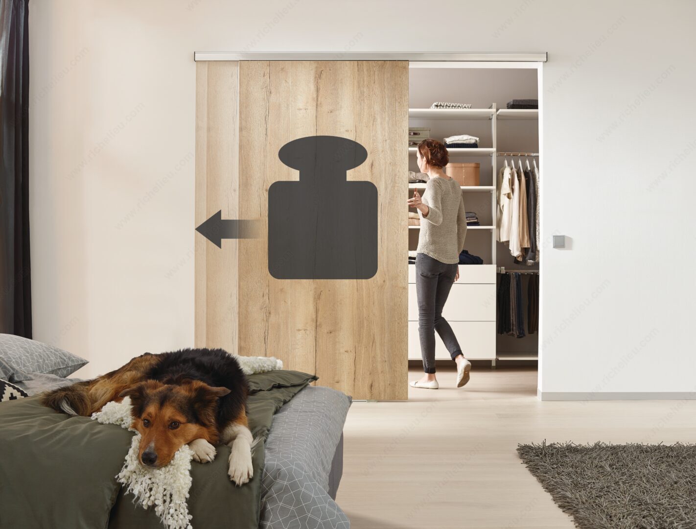 Richelieu WEBKIT1220238 Grant TopLine Low Profile Sliding Door SystemRichelieu WEBKIT1220238 Grant TopLine Low Profile Straight Sliding Door System offers a sleek and elegant solution for both commercial and residential spaces, accommodating low-profile wood doors weighing up to 500 lb (227 kg) and a minimum thickness of 1 3/8 in (35 mm). The precision ball bearing wheel trolleys glide effortlessly along sturdy aluminum box tracks, ensuring smooth operation. Designed for versatility, this system supports single, biparting, and bypassing door applications, making it ideal for restricted headroom installations. For added convenience, a Silent System soft-close and soft-open mechanism is available separately, suitable for doors weighing up to 325 lb (147 kg). Key specifications include a maximum door height of 9 ft 10 in and an overall length of 96 in, with door widths ranging from 30 to 94 1/2 in. This system requires a ceiling mount track installation and is intended for framed applications only. Essential installation considerations emphasize the importance of using pre-drilled screws and ensuring a carefully leveled header. Richelieu prioritizes quality and performance, making the Grant TopLine system a perfect choice for enhancing both aesthetics and functionality in your spaces. Always refer to the manufacturer’s instructions for installation and maintenance to ensure optimal results.