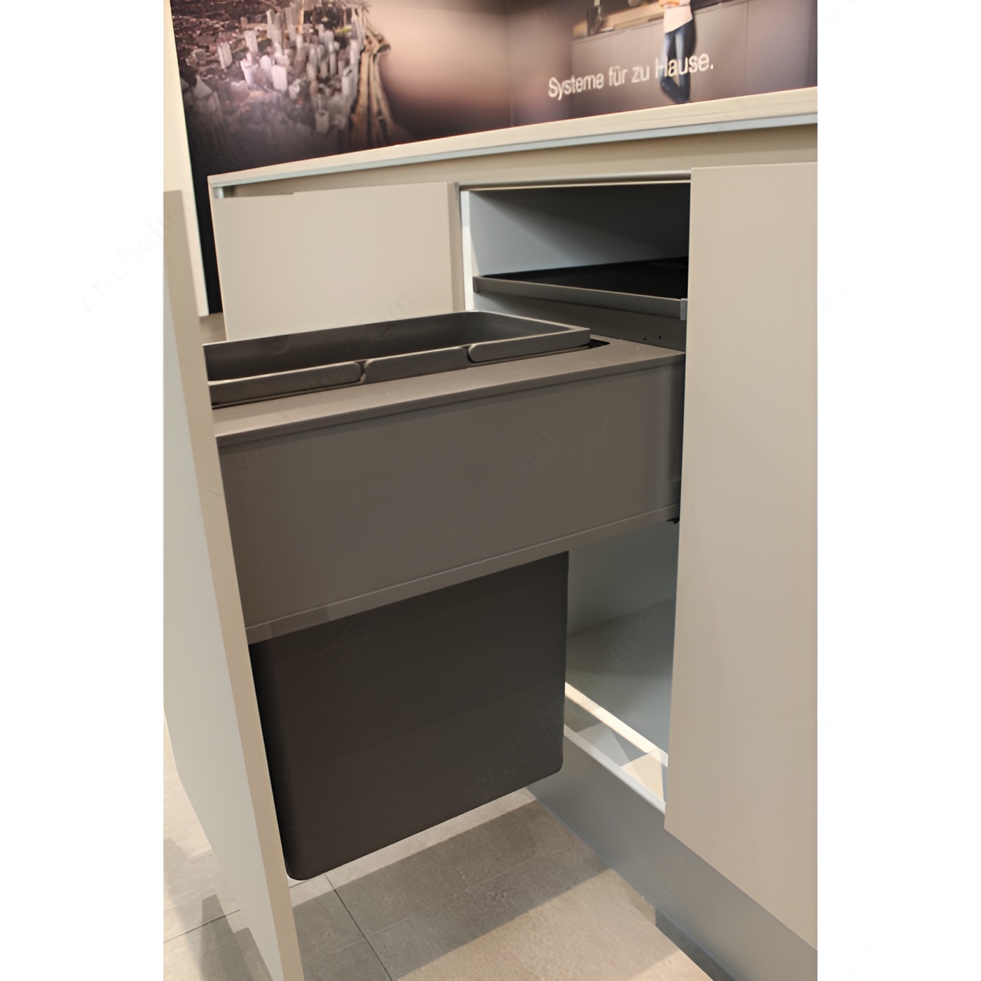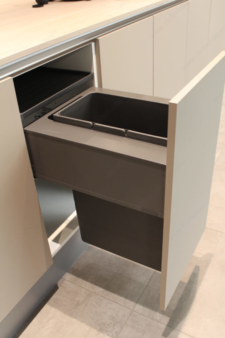 Richelieu WEBKIT1232955 One2Seven System offers an efficient recycling solution designed specifically for the 23 5/8 inch (600 mm) LEGRABOX drawer. This innovative recycling center streamlines waste management while effortlessly fitting into modern cabinetry. With a sleek dark gray finish, it complements a variety of kitchen designs. The system boasts a robust capacity of 74 pt, making it ideal for households committed to sustainability. Its exterior width of 17 3/4 inches and interior dimensions of 21 3/4 inches in depth, 18 7/8 inches in height, and 16 1/4 inches in width provide ample space for waste and recycling. Built to last, it supports a load capacity of up to 88.2 lb, ensuring durability and reliability. Featuring full extension slides, the WEBKIT1232955 allows for easy access to contents, making it a convenient addition to your kitchen. The product dimensions of 21 5/8 inches in depth, 18 1/2 inches in height, and 15 3/4 inches in width ensure it fits seamlessly within your cabinetry. With a thickness of 5/8 inch (16 mm) for drawer side panels, this recycling center is as functional as it is stylish. Choose Richelieu for a practical and elegant waste management solution.