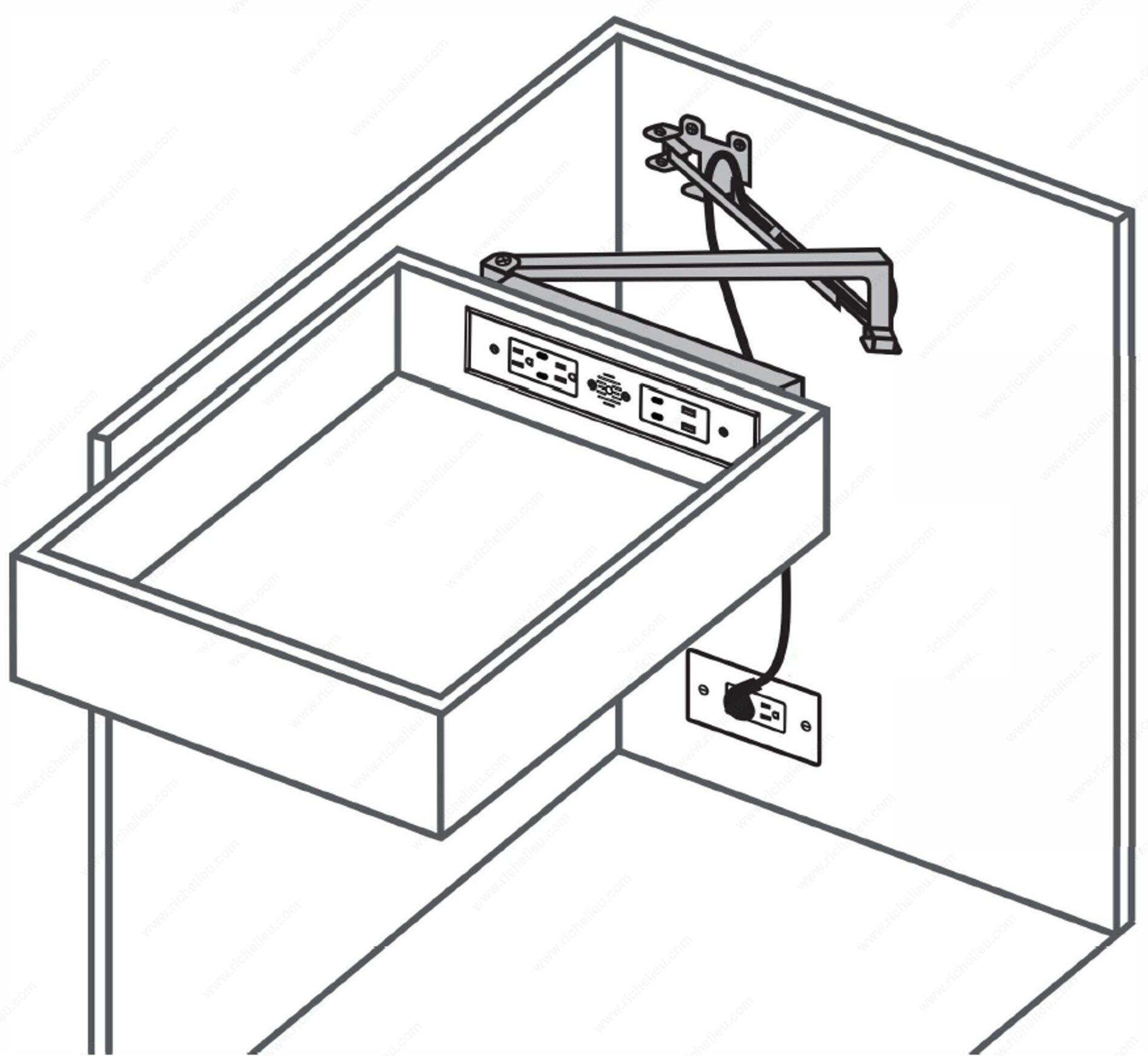 Richelieu WEBSO1250136 Docking Drawer Blade Duo 1514-277Richelieu WEBSO1250136 Docking Drawer Blade Duo 1514-277 offers an innovative solution for managing power in your living spaces while maintaining a clean aesthetic. This market-leading in-drawer outlet is the only ETL-Listed product of its kind, ensuring top-notch safety and quality. Designed with safety in mind, it features an integrated thermostat that automatically cuts power if temperatures exceed 120 °F (50 °C), providing peace of mind for users. With a smart design that includes cable management arms, this docking drawer protects and guides cords seamlessly as the drawer opens and closes. Crafted with premium all-metal components, it promises strength and long-lasting durability, making it a reliable choice for any application, from bathrooms to furniture setups. Future-ready and easily upgradeable, this docking drawer adapts to evolving technology, ensuring lifelong usability. Installation is straightforward, fitting into any drawer type for a seamless setup that enhances organization. By keeping cords and devices concealed, the Richelieu Docking Drawer Blade Duo fosters clutter-free spaces, creating more functional surfaces for everyday use. Dimensions include a height and width of 2-17/32 in, a length of 12-3/8 in, and a power plug type of 1 20 AMP 120 AC Plug, making it a versatile addition to your home.