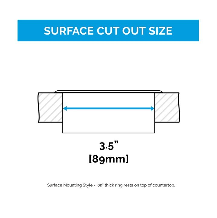 Surface Mount: Simplest installation, with the outlet ring sitting just 1" (2.5 mm) above your countertop.