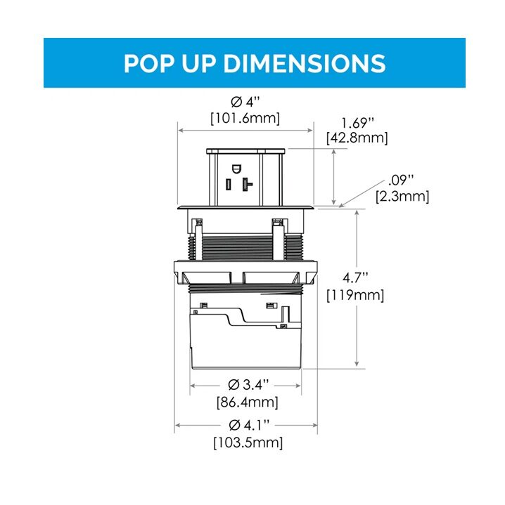 Elevate your workspace with the Countertop Pop-Up Outlet, UL-listed for both the U.S. and Canada. Designed to provide convenient power access without compromising your countertop aesthetics, this outlet is ideal for kitchens, offices, and modern interiors.