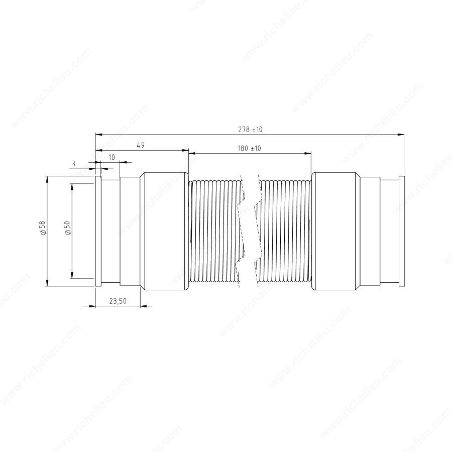 Richelieu WEBSO1257431 Flexible Drain Hose for Kitchen is designed to provide reliable drainage solutions for sinks on worktop units and kitchen lifts. This versatile hose features a fool-proof connection, ensuring a seamless installation process that minimizes the risk of leaks and enhances overall functionality. With a diameter of 1 31/32 inches, this flexible drain hose accommodates various sink setups, making it an ideal choice for both new installations and retrofits. The gray finish adds a subtle touch of modernity, allowing it to blend effortlessly into your kitchen environment. Couplings are supplied, simplifying the assembly process and making it user-friendly for both professionals and knowledgeable homeowners. Crafted by Granberg, a trusted name in kitchen accessories, the WEBSO1257431 drain hose offers durability and performance that you can depend on. Its flexible design allows for easy adjustments to fit your specific kitchen layout, ensuring optimal performance with minimal hassle. Whether you are upgrading your kitchen or completing a new build, this drain hose is a reliable choice that combines practicality and efficiency. Experience the peace of mind that comes with quality installation and effective drainage solutions with Richelieu’s flexible drain hose.
