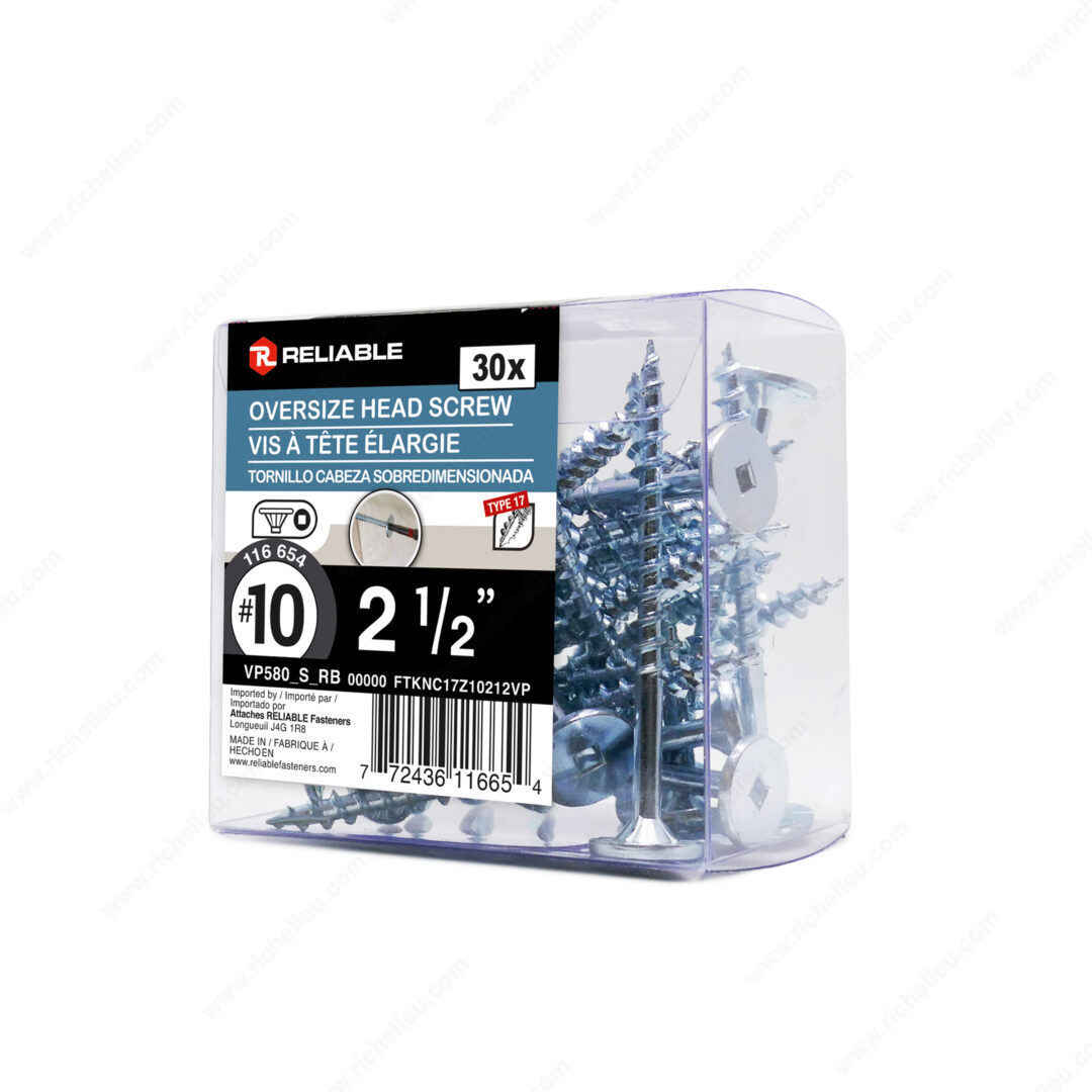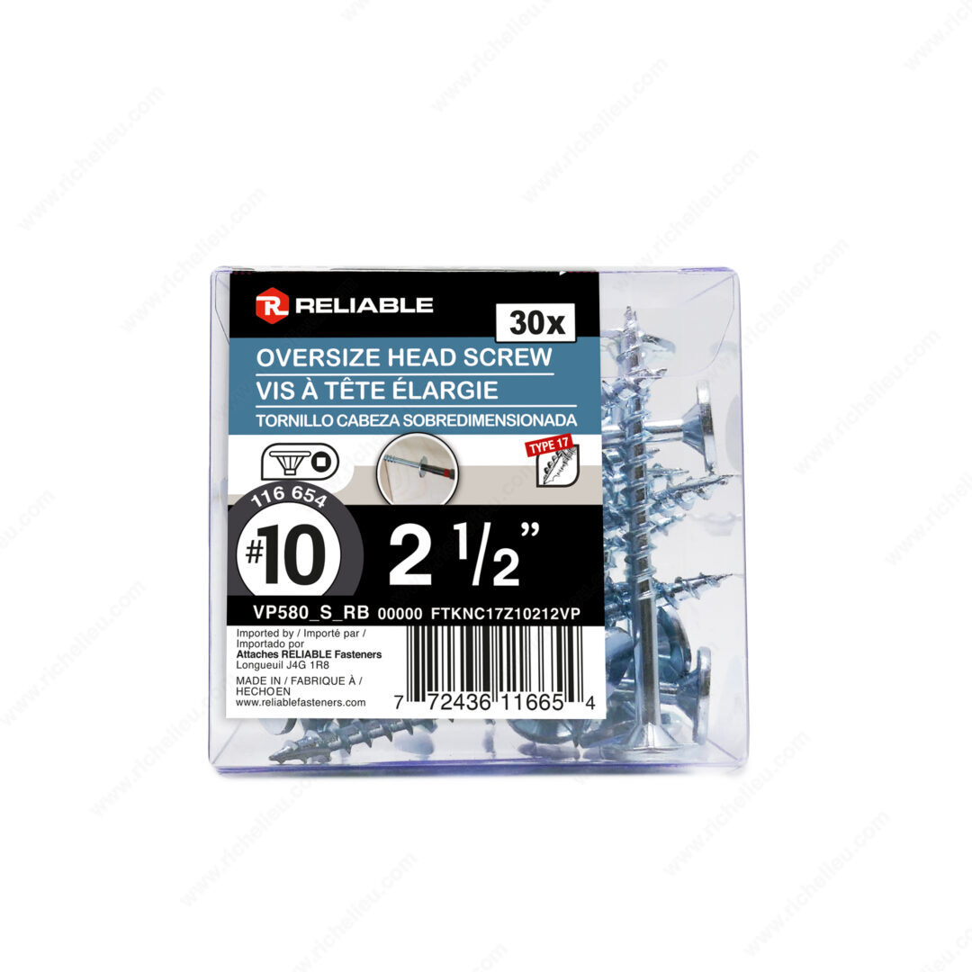Richelieu FTKNC17Z10212VP Zinc-Plated Wood Screw is engineered for superior performance, making it an excellent choice for cabinet installation. The standout feature of this screw is its PowerHead design, which boasts a large, oversized flat head that delivers four times the holding power of conventional screw heads. This exceptional strength ensures a secure fit, providing peace of mind for any project. The screw is fitted with a self-drilling Type 17 point, allowing for effortless penetration into hardwood and engineered wood materials. Its self-tapping head enables the screw to recess neatly into the surface when installed with an impact screwdriver, enhancing the overall finish of your work. Constructed from durable steel and finished with a protective zinc coating, the FTKNC17Z10212VP is designed to withstand various environmental conditions without compromising integrity. With a length of 2 1/2 inches and a screw size of 10, this product features a coarse thread with a thread count of 8, ensuring robust engagement. Packaged conveniently in boxes of 30, this versatile screw is perfect for both professionals and DIY enthusiasts alike. Elevate your installation projects with the reliability and performance of Richelieu’s FTKNC17Z10212VP wood screw.