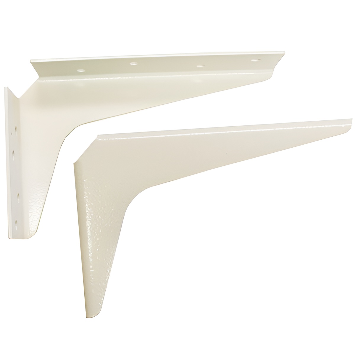 RPC, US FUTABA, A&M B08-24291-6K4 Work Station Bracket 1/8" x 24" x 29" White delivers the strength and versatility you need for various applications. Engineered from durable 1/8" steel, this cantilever support bracket can hold up to 1,000 lbs per pair when properly installed with 1/4" lag bolts (not included). Its robust construction makes it an ideal choice for building computer workstations, garage shelving, and ADA-compliant stations. This bracket features multiple 1/4" mounting holes on each side, ensuring a secure fit and easy installation. The reversible design adds to its functionality, allowing you to use either the short or long leg for your project. Additionally, the larger sizes come with a 3" x 3" notch, facilitating wall cleat and wire run clearance. Available in a range of powder coat finishes-black, almond, gray, and white-these brackets not only perform exceptionally but also blend seamlessly with your décor. Each set is packaged in pairs, providing you with all you need to get started. Note that load capacity may vary based on the fastening type used. Ideal for both professionals and knowledgeable DIYers, the RPC Work Station Bracket combines reliability with ease of use.
