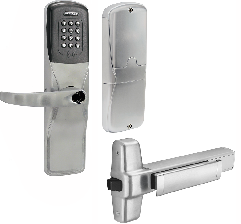 AD Series electronic locks from Schlage are designed to be modular and provide more options to choose from, more functionality in the lock and more compatibility with existing systems. Its patent-pending modular design allows the lock to be customized to fit the needs of an application now, and changed to meet future needs without removing it from the door. Factory orderable options include choices of credential readers, chassis type, network configurations, locking functions, lever styles and finishes. It also offers a wide selection of features that can be configured in the field to customize your openings. To simplify installation, the AD series combines all the hardware components required at the door for a complete access control system into one integrated design that includes the electrified lock, credential reader, request-to-exit and request-to-enter sensors, door position switch, tamper switch and more. The AD-300 has a number of features built-in that are configurable in the field and a long list of items that can be monitored by access control software.
