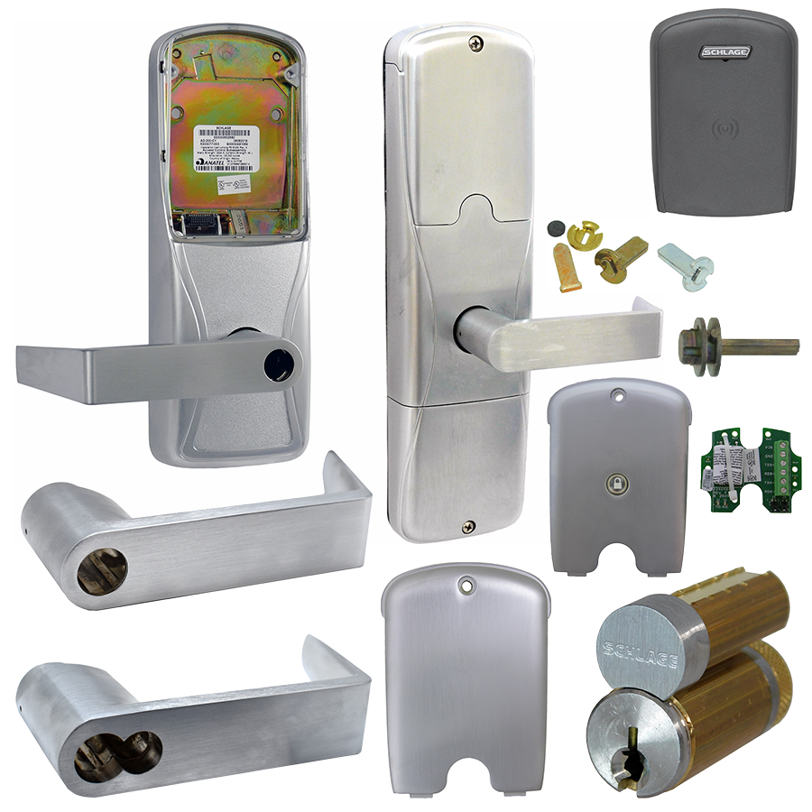 AD Series electronic locks from Schlage are designed to be modular and provide more options to choose from, more functionality in the lock and more compatibility with existing systems. Its patent-pending modular design allows the lock to be customized to fit the needs of an application now, and changed to meet future needs without removing it from the door. Factory orderable options include choices of credential readers, chassis type, network configurations, locking functions, lever styles and finishes. It also offers a wide selection of features that can be configured in the field to customize your openings. To simplify installation, the AD series combines all the hardware components required at the door for a complete access control system into one integrated design that includes the electrified lock, credential reader, request-to-exit and request-to-enter sensors, door position switch, tamper switch and more. The AD-300 has a number of features built-in that are configurable in the field and a long list of items that can be monitored by access control software.