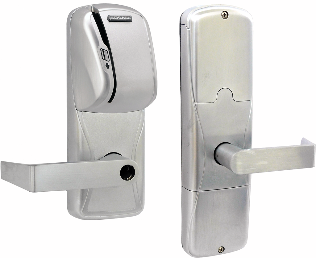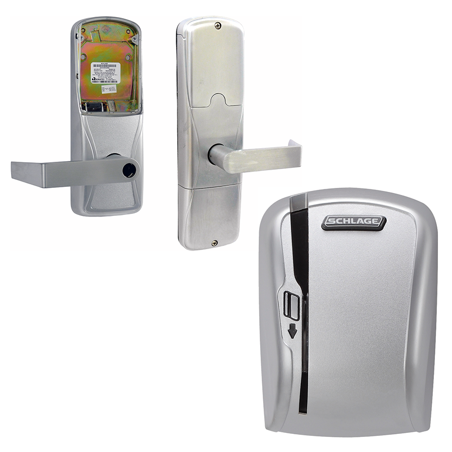 AD Series electronic locks from Schlage are designed to be modular and provide more options to choose from, more functionality in the lock and more compatibility with existing systems. Its patent-pending modular design allows the lock to be customized to fit the needs of an application now, and changed to meet future needs without removing it from the door. Factory orderable options include choices of credential readers, chassis type, network configurations, locking functions, lever styles and finishes. It also offers a wide selection of features that can be configured in the field to customize your openings. To simplify installation, the AD series combines all the hardware components required at the door for a complete access control system into one integrated design that includes the electrified lock, credential reader, request-to-exit and request-to-enter sensors, door position switch, tamper switch and more. The AD-300 has a number of features built-in that are configurable in the field and a long list of items that can be monitored by access control software.