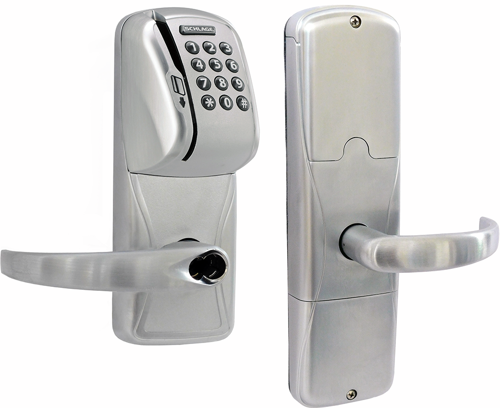 AD Series electronic locks from Schlage are designed to be modular and provide more options to choose from, more functionality in the lock and more compatibility with existing systems. Its patent-pending modular design allows the lock to be customized to fit the needs of an application now, and changed to meet future needs without removing it from the door. Factory orderable options include choices of credential readers, chassis type, network configurations, locking functions, lever styles and finishes. It also offers a wide selection of features that can be configured in the field to customize your openings. To simplify installation, the AD series combines all the hardware components required at the door for a complete access control system into one integrated design that includes the electrified lock, credential reader, request-to-exit and request-to-enter sensors, door position switch, tamper switch and more. The AD-300 has a number of features built-in that are configurable in the field and a long list of items that can be monitored by access control software.