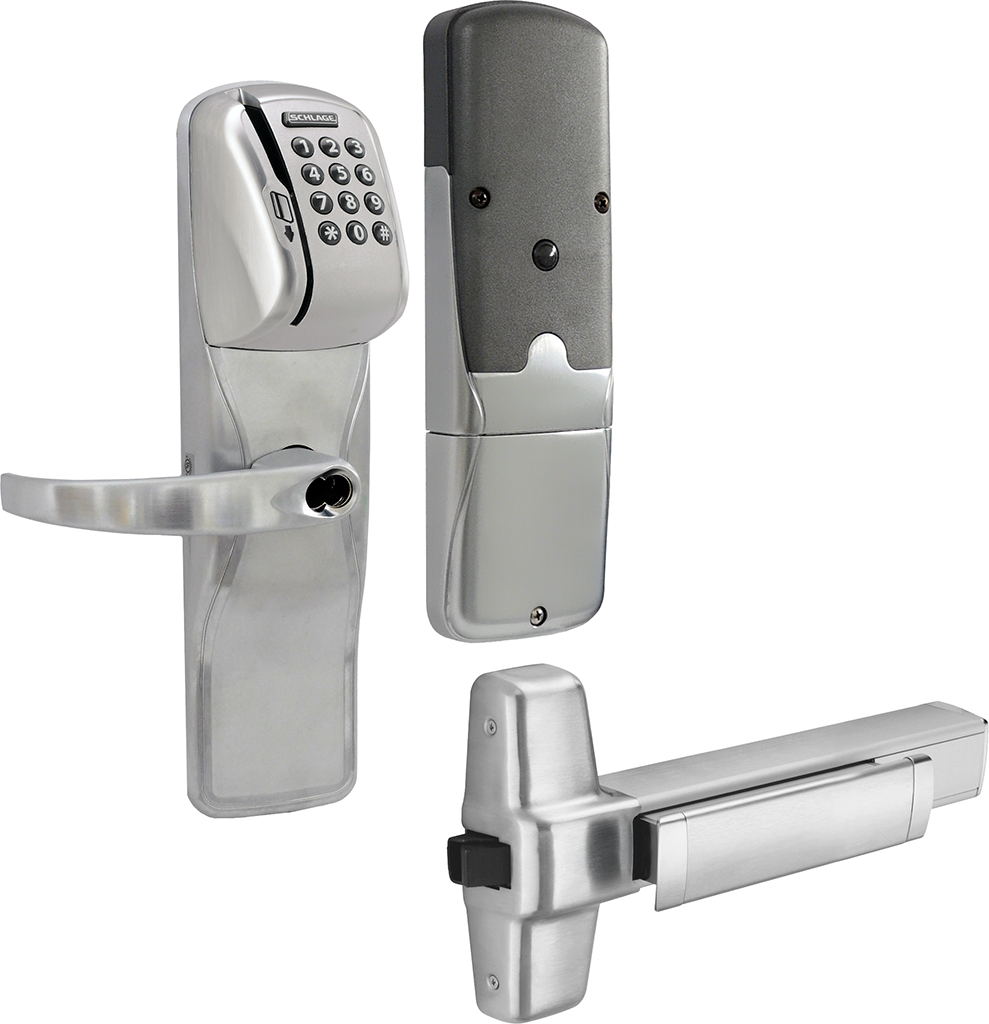 KIT - Magnetic Stripe (Swipe Card) and Keypad Networked Wireless Classroom/Storeroom, Exit Trim for RIM or CVR (Concealed Vertical Rod/Cable) Exit Devices, Sparta Lever, SFIC (Small Format IC), Less Core, UL, Field Reversible Handing, Grade 1, 626/US26D Satin Chrome