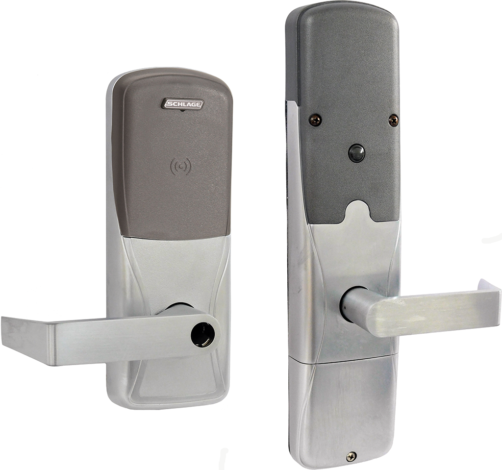 AD Series electronic locks from Schlage are designed to be modular and provide more options to choose from, more functionality in the lock, and more compatibility with existing access control systems. Its patented modular design allows the lock to be customized to fit the needs of an application now and changed to meet future needs without removing it from the door. To simplify installation, the AD series combines all the hardware components required at the door for a complete access control system into one integrated design that includes the electrified lock, credential reader, request-to-exit, and request-to-enter sensors, door position switch, tamper switch, and more. The AD-400 wireless networked lock gives you many of the key benefits of a hardwired access control system—without the wires. This allows you to secure doors that were traditionally difficult to run wires to in the past and increase the security throughout your facility.