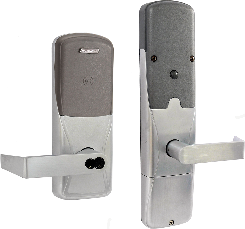 - Multi-technology credential compatibility includes Schlage MiFare, NFC mobile, and proximity
