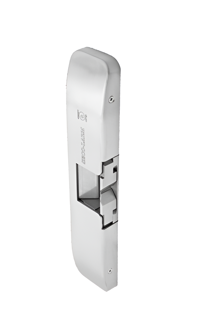 The surface-mount electric rim strike designed with the strength and durability for use with rim-type exit devices with a pullman latch bolt (1/2" throw). The strike features 12/24VDC operating voltage, selectable fail-safe/fail-secure operation, horizontal adjustment, and a surface-mount metal housing, eliminating the need for frame cutting during installation.